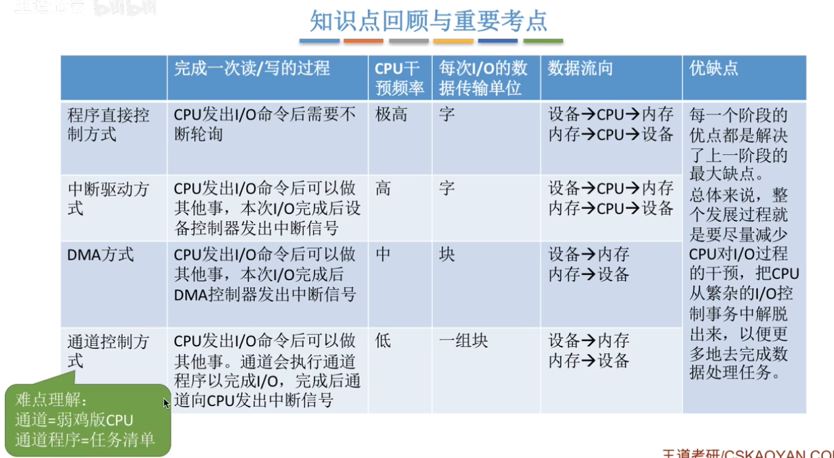 注意,在学习这几个I/O控制方式时,要注意研究上图提出的几个问题。