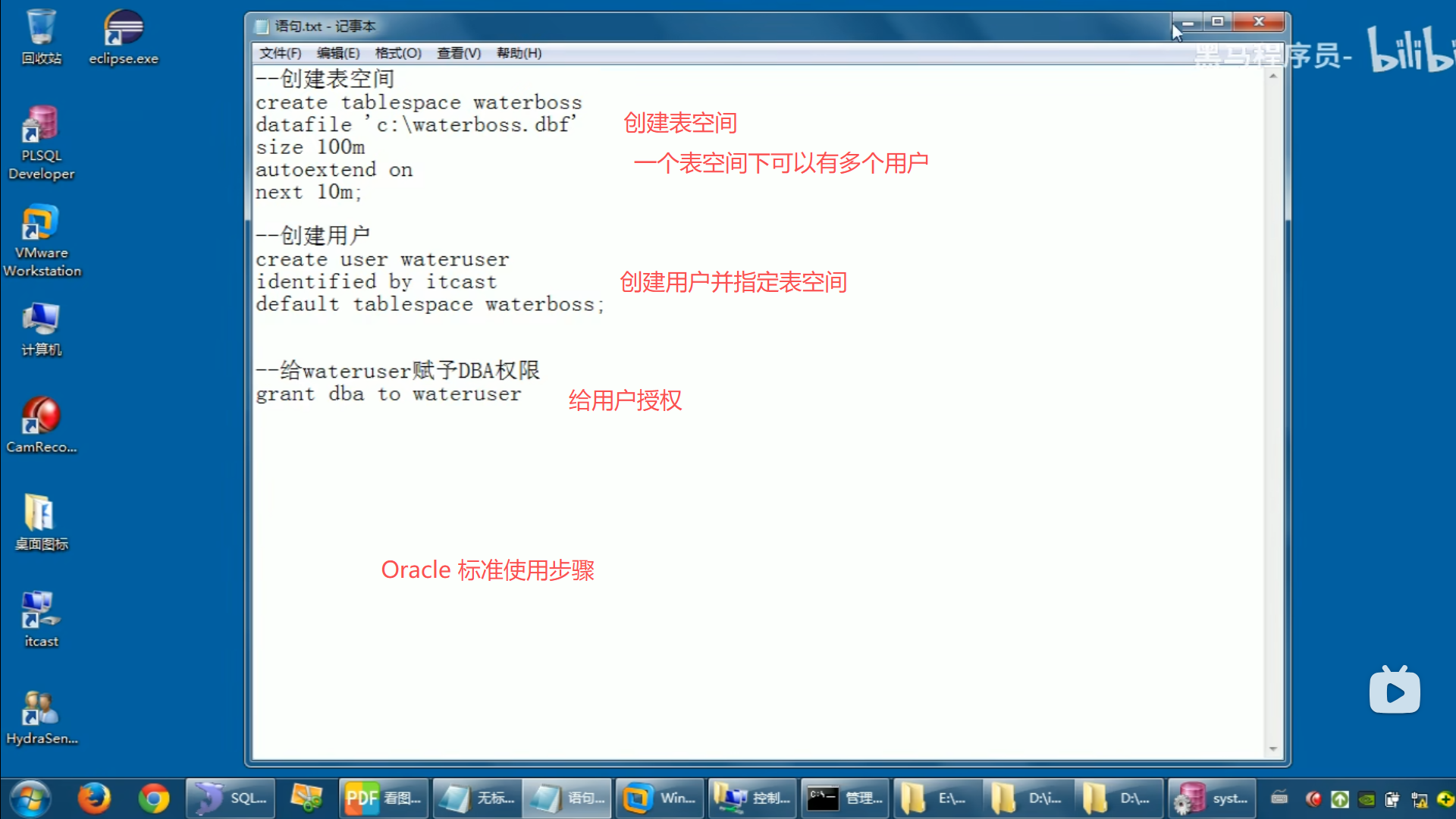 Oracle 标准结构 一个项目 一个用户 一个表空间