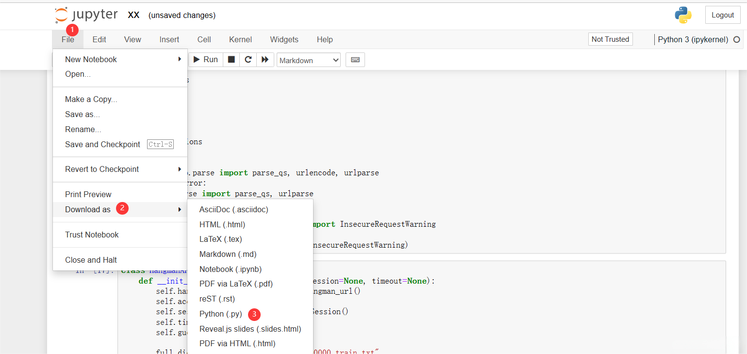 - 点击 Notebook 工具栏上的 Convert to Python File 按钮