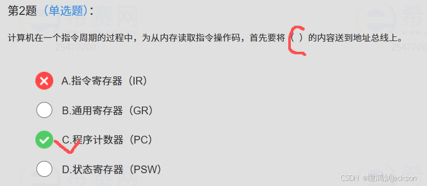 PC(程序计数器)是用于存放下一条指令所在单元的地址。当执行一条指令时,处理器首先需要从PC中取出指令在内存中的地址,通过地址总线寻址获取。
