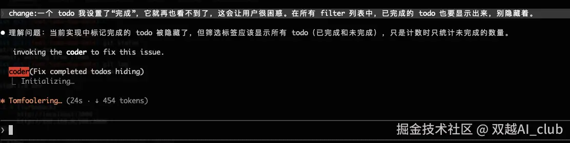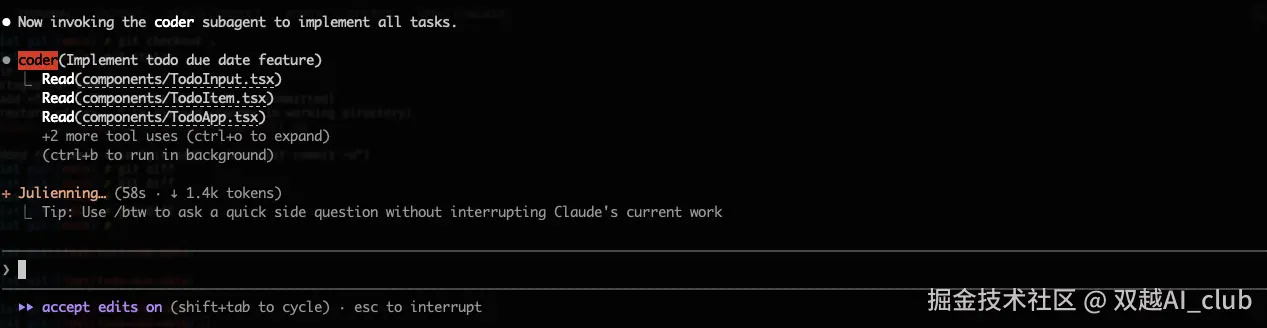 它开始调用 coder agent 开始编码
