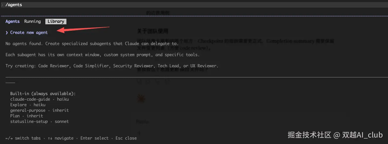 运行 /agents 可查看当前 sub agent ,也可以创建新的 sub agent