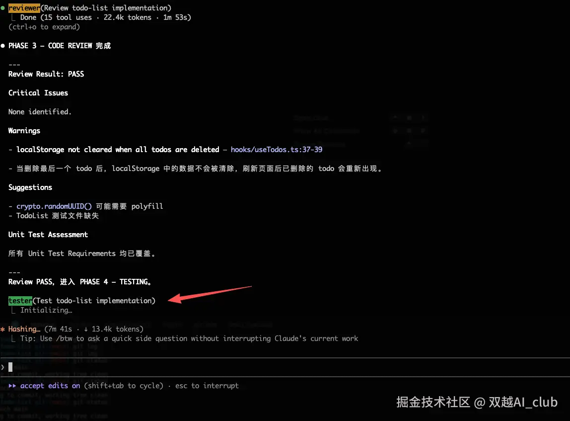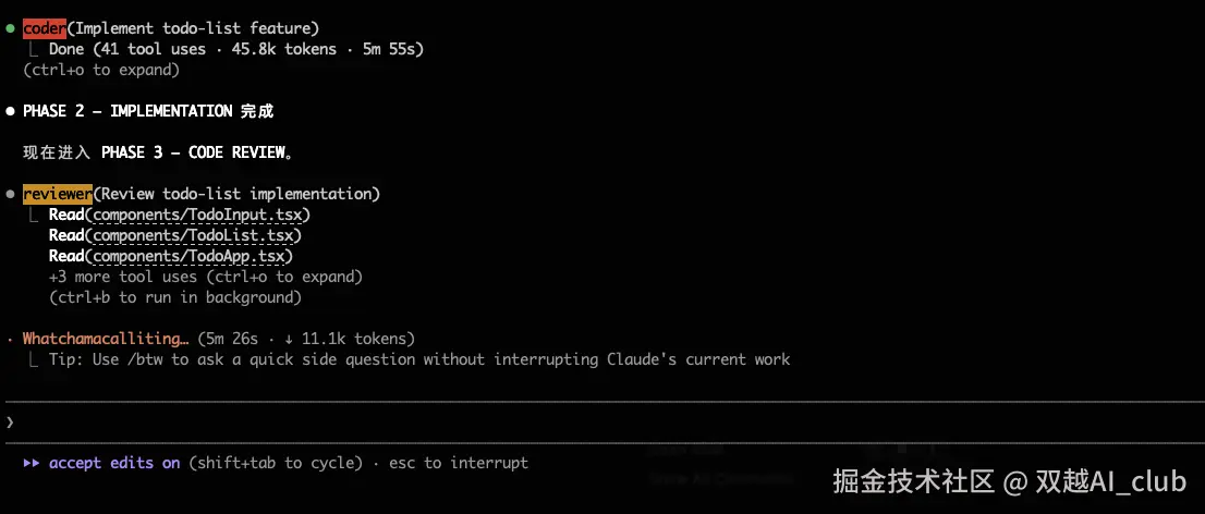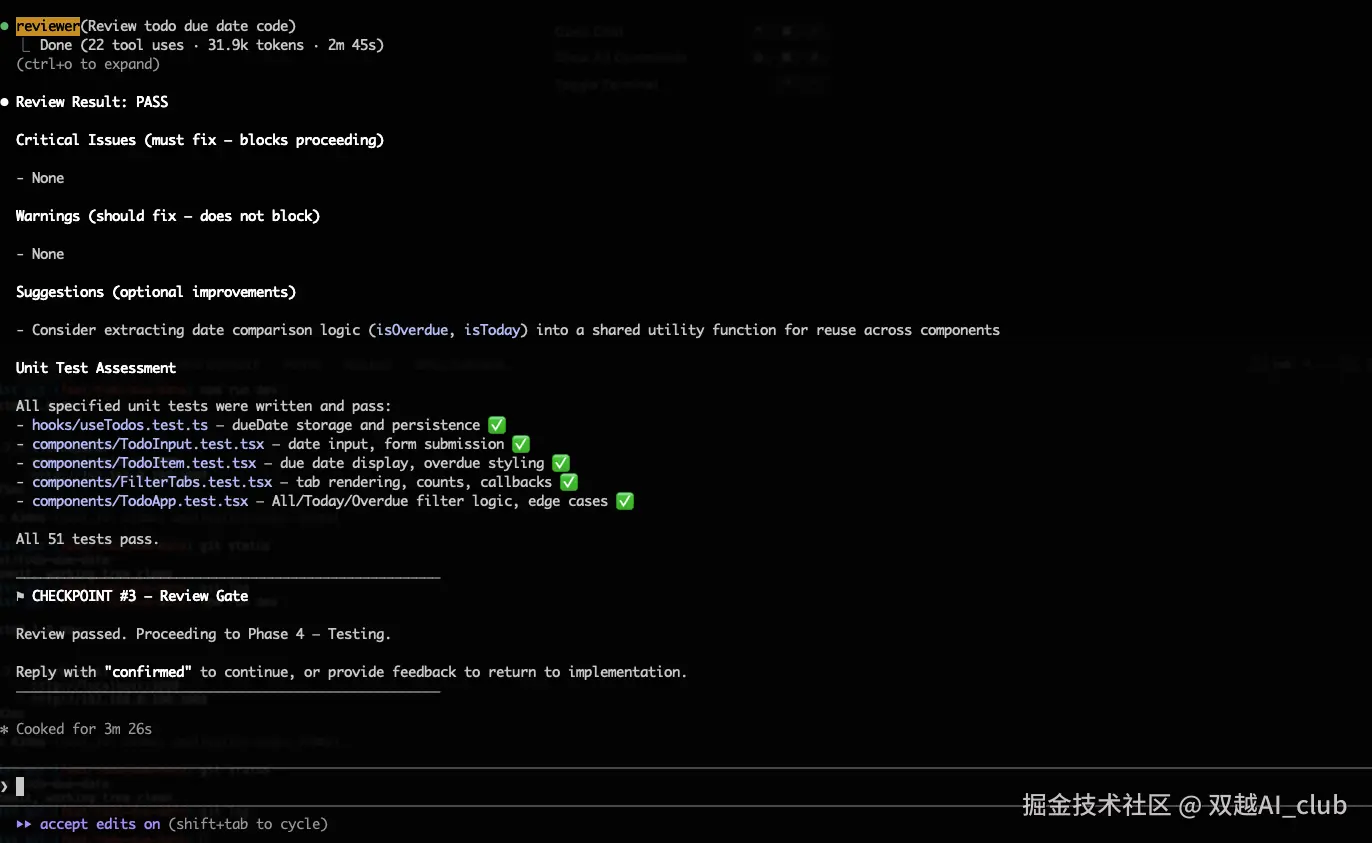 它自动调用 reviewer agent 进行代码走查,最后结果没问题。