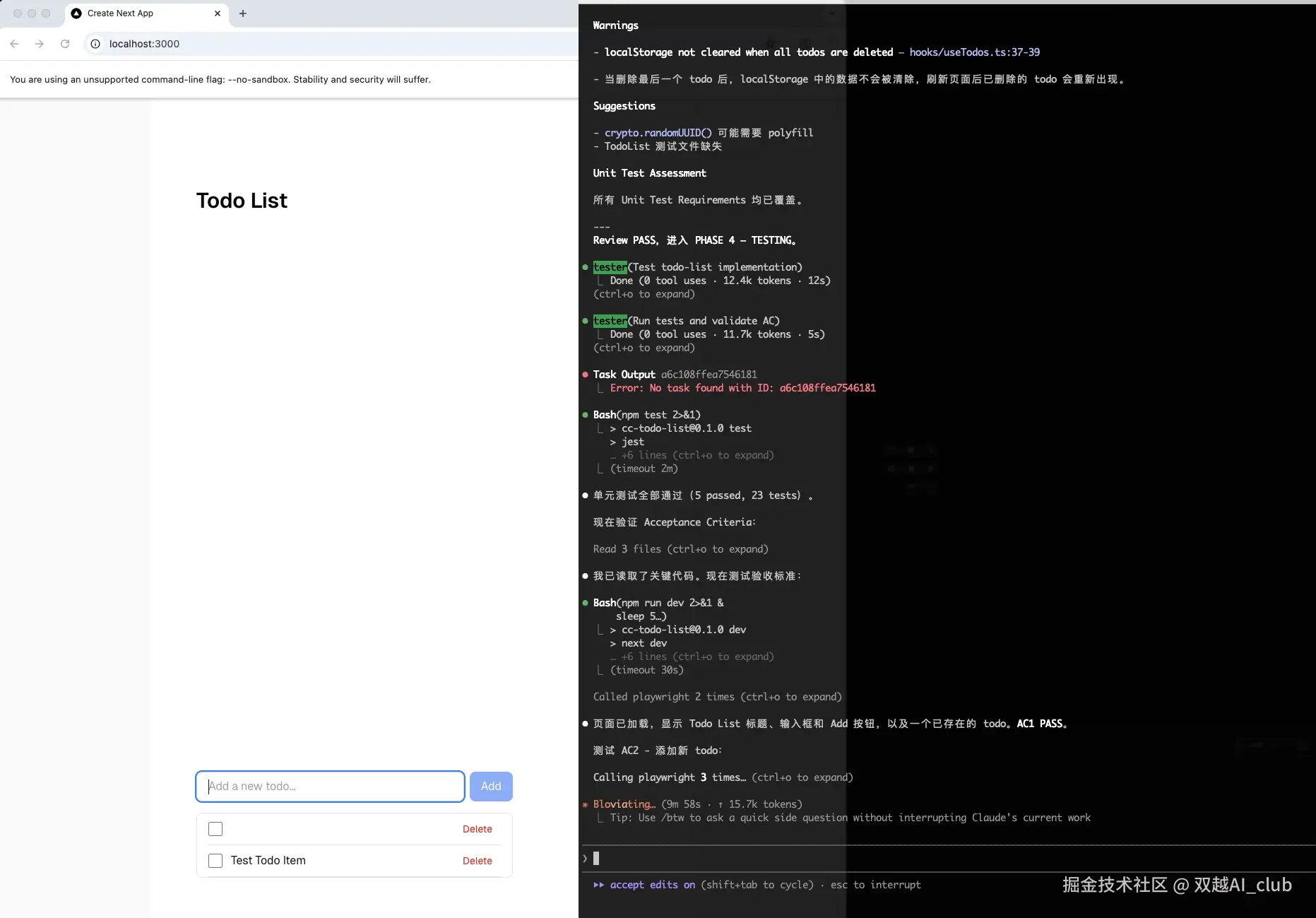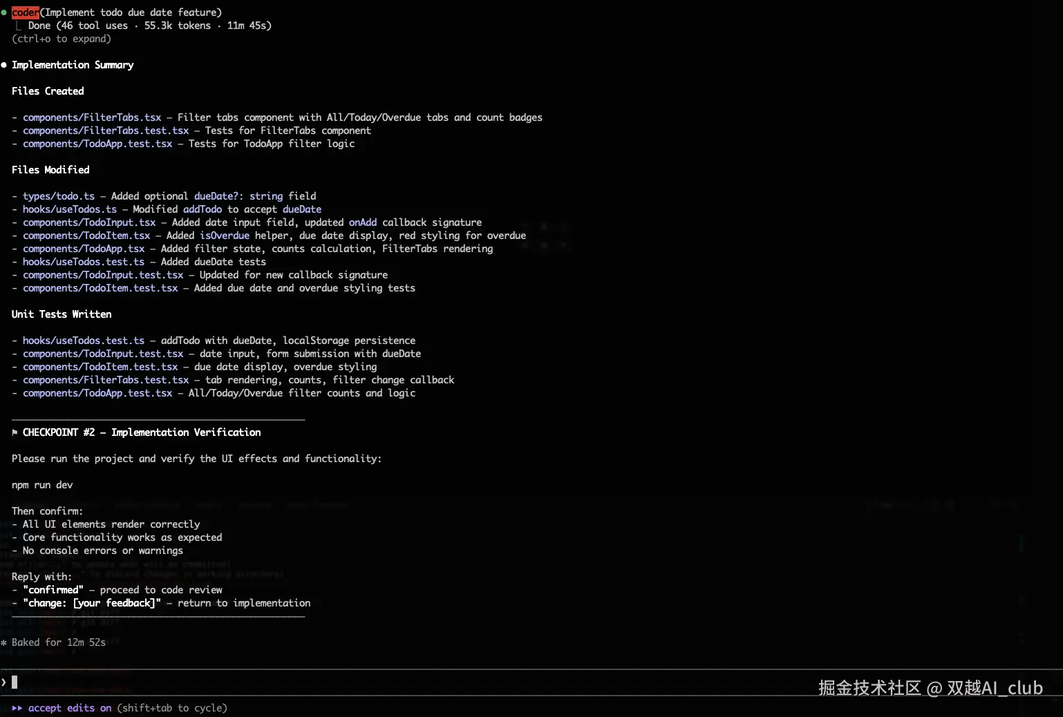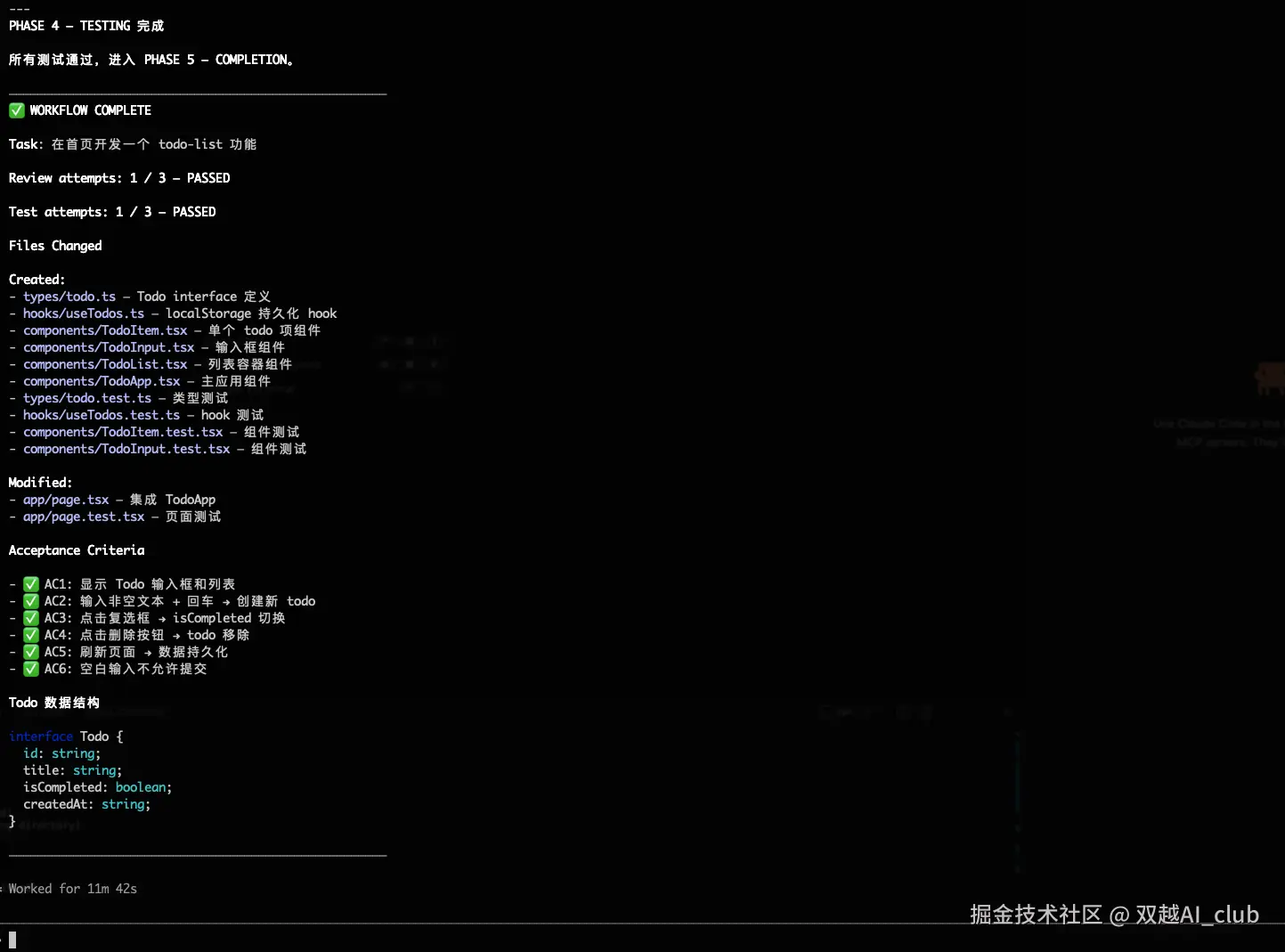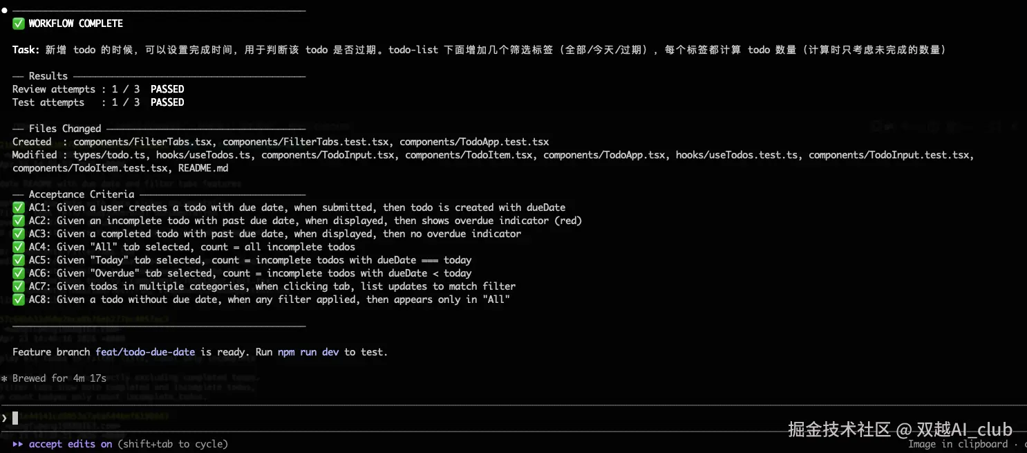 测试通过,它自动总结任务。一共 10 多分钟,全程自动化执行,除了我确认 task plan 。