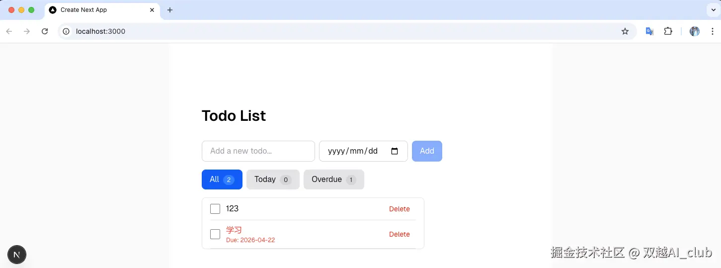 从 0 开始,初始化一个 nextjs 新项目。其他技术栈或框架也都没问题,对于 AI 都一样。