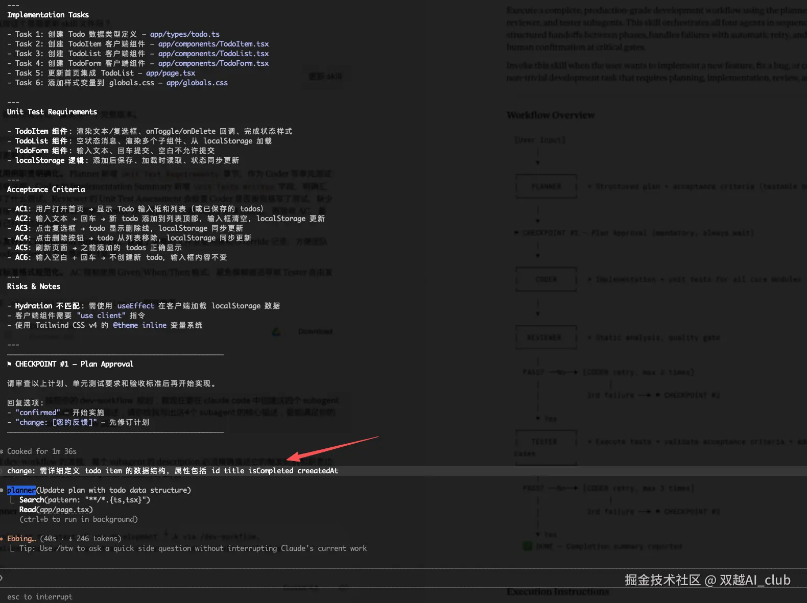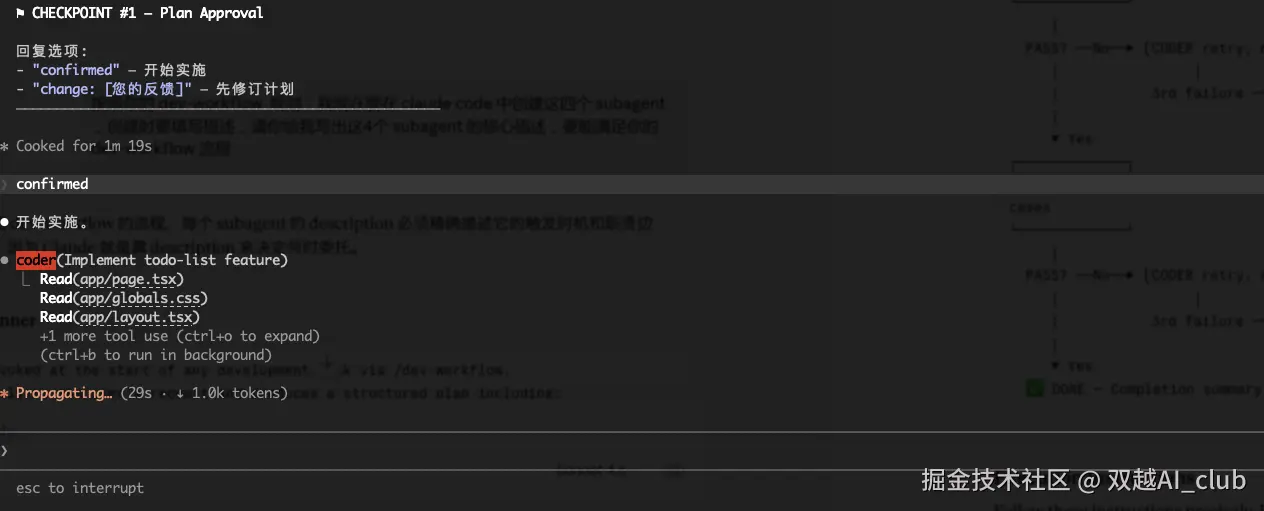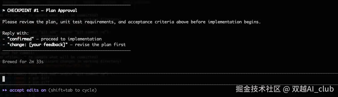 修改完成以后,Checkpoint2 再停止,用户检查,这次没问题了。我手动回复 confirmed