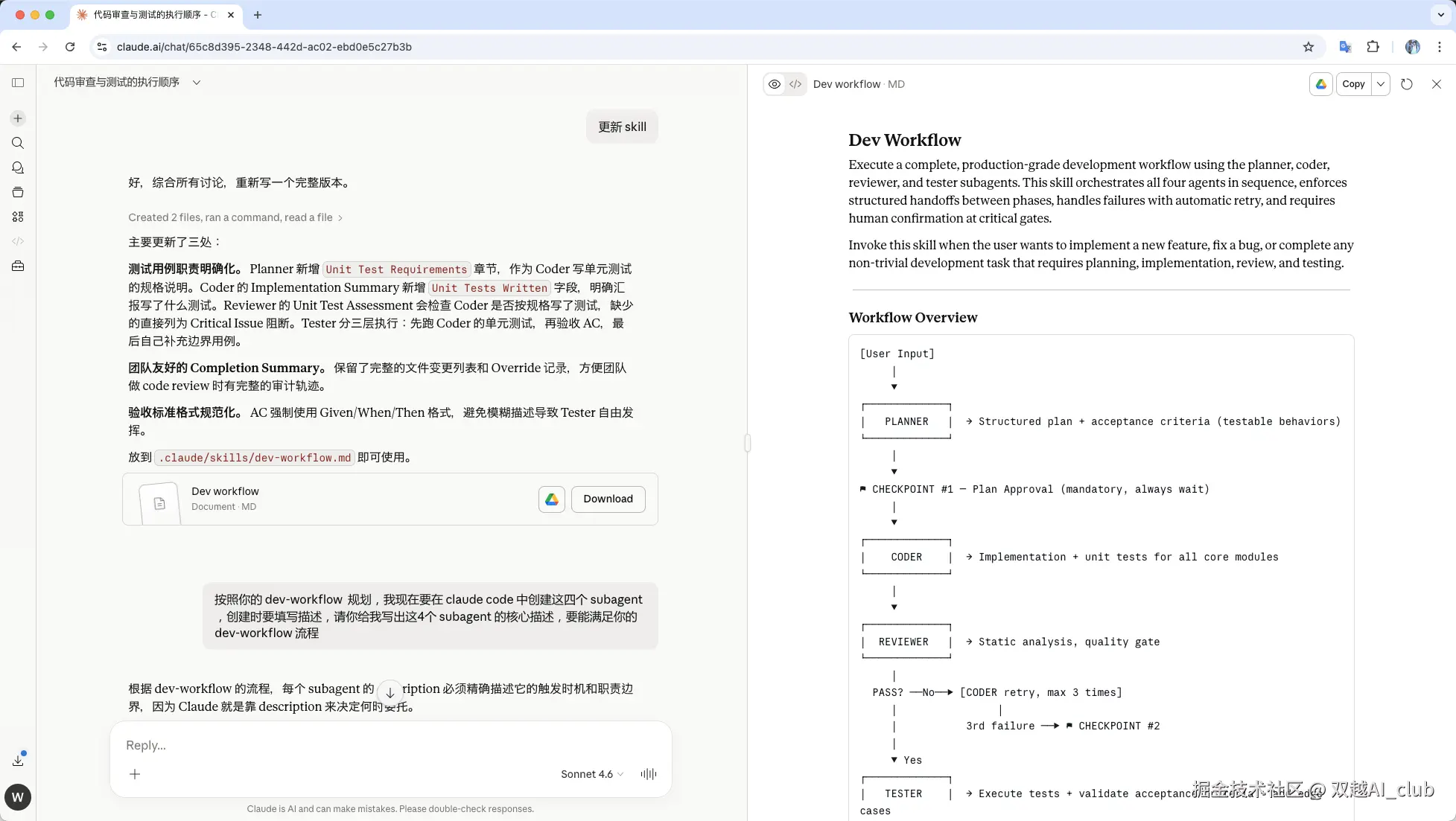 有了上述的 skill 流程,我就让 claude.ai 继续帮我生成了 4 个 subagent 的提示提示词,下文有。