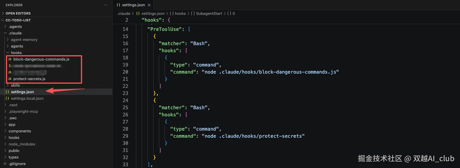 然后调用这个 skill 帮我创建 hook ,或者你直接输入 prompt 它会自己调用这个 skill