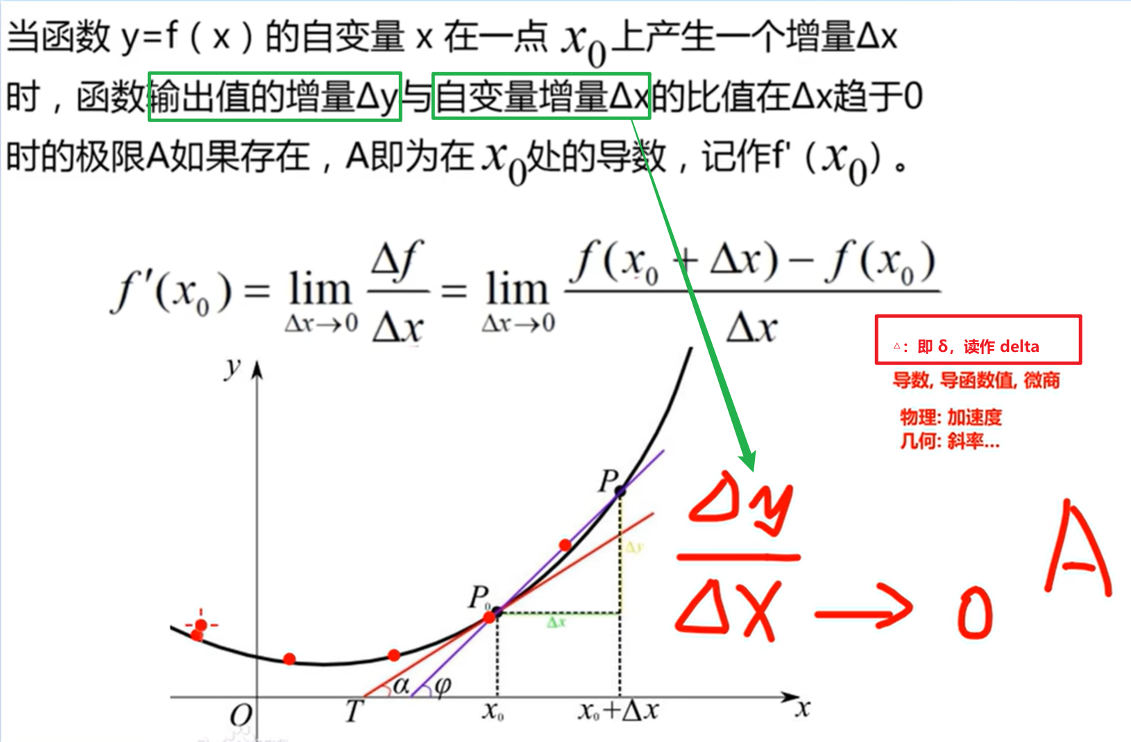 函数上某一个点求切线就是导数;瞬时速度变化率;