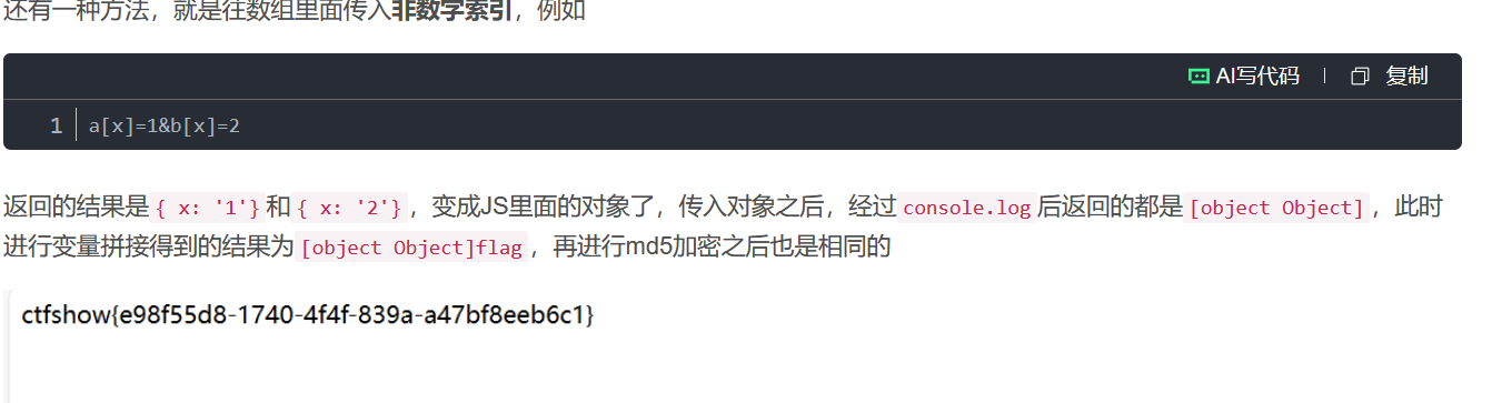和之前的php一样,这里md5的处理方式,可以识别数组,但是数组和对应的1不等于