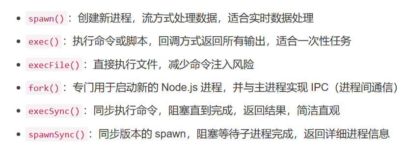 cp.execSync('ls').toString() **cp是缩写