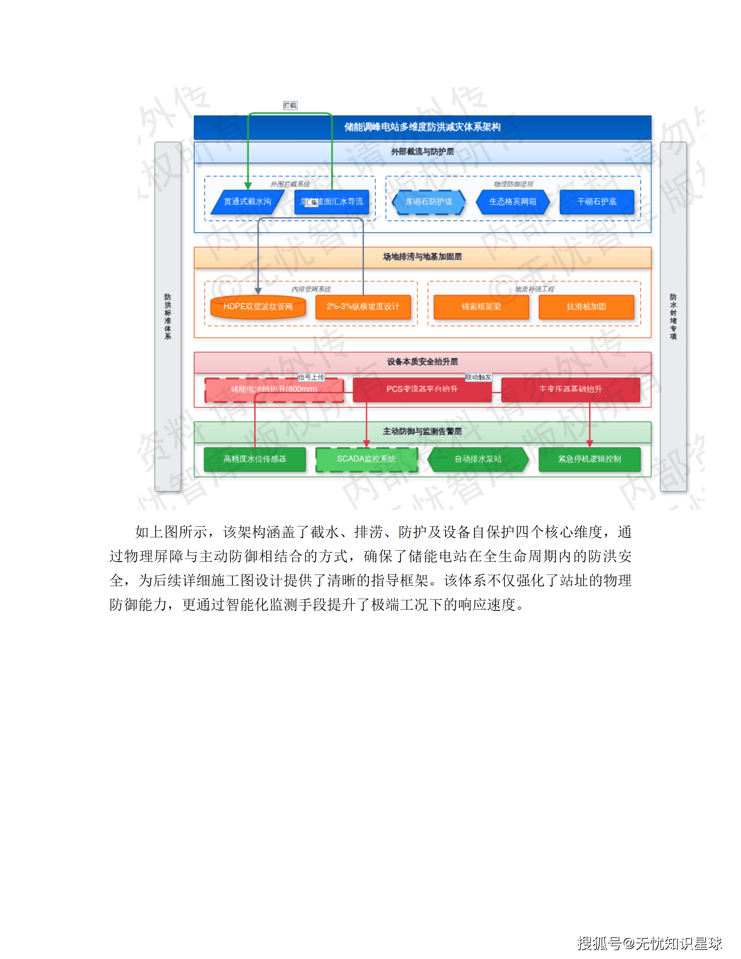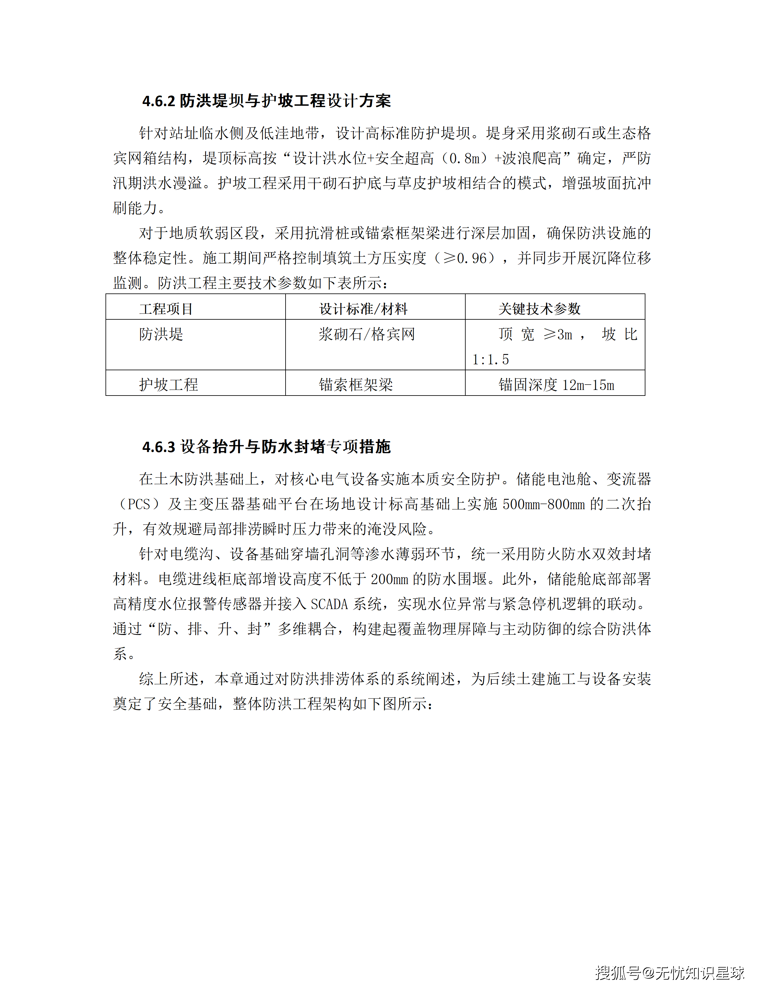 项目采用了皮尔逊-Ⅲ型曲线进行洪水频率分析,推算50年一遇设计、100年一遇校核的洪峰流量。 通过一、二维非恒定流数学模型模拟建设前后河道流场变化,将局部壅水高度控制在3cm以内,河道行洪断面缩窄率低于1.5%。 综合防洪体系采取"外挡、内排、主动预警"三位一体策略------防洪堤顶标高=校核洪水位+0.5m安全超高,内排系统部署独立雨水泵站,数字侧集成基于IoT的"水位-雨量-工程状态"三位一体监控平台。