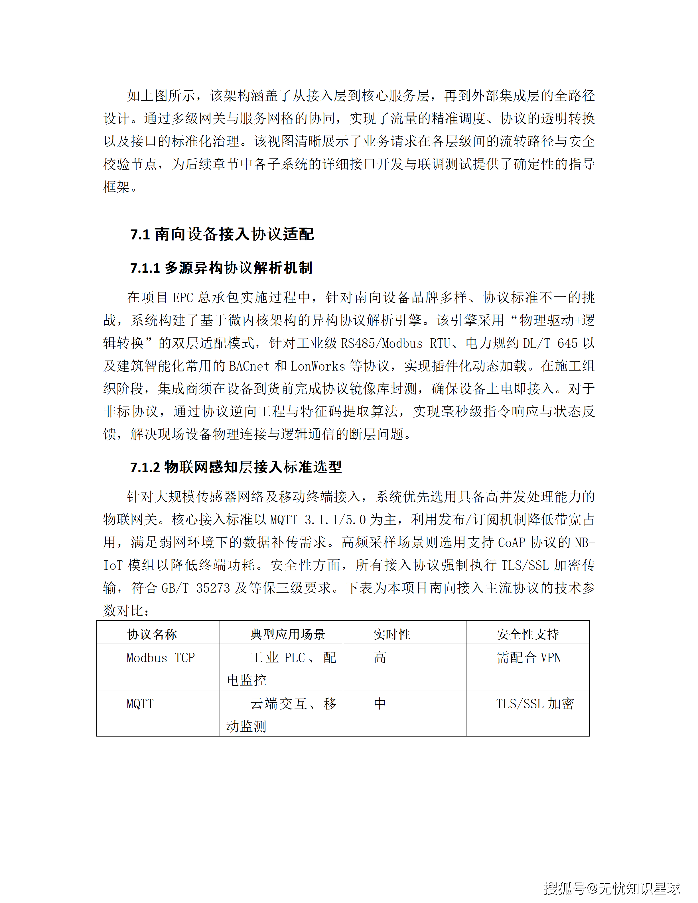语义异构 :不同厂商设备的通信协议高度碎片化(Modbus RTU/TCP、DL/T 645、IEC 61850、MQTT等互不兼容),即便是同一物理量"有功功率",不同设备的寄存器地址、缩放比例、数据类型定义可能完全不同。项目在能源物联网接入底座构建协议解析镜像化处理层,将所有协议统一转换为平台内部标准数据模型。