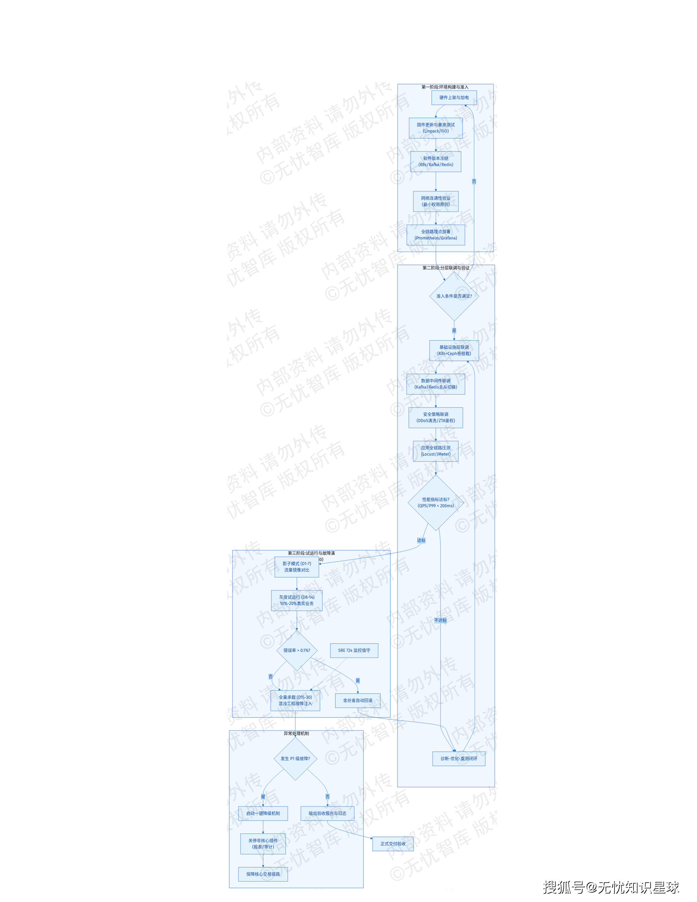 整体SLA目标:系统可用性≥99.999%,全年非计划停机时间≤5分钟。 通过"两地三中心"部署,利用GSLB(全局负载均衡)实现流量就近接入与故障秒级切换。