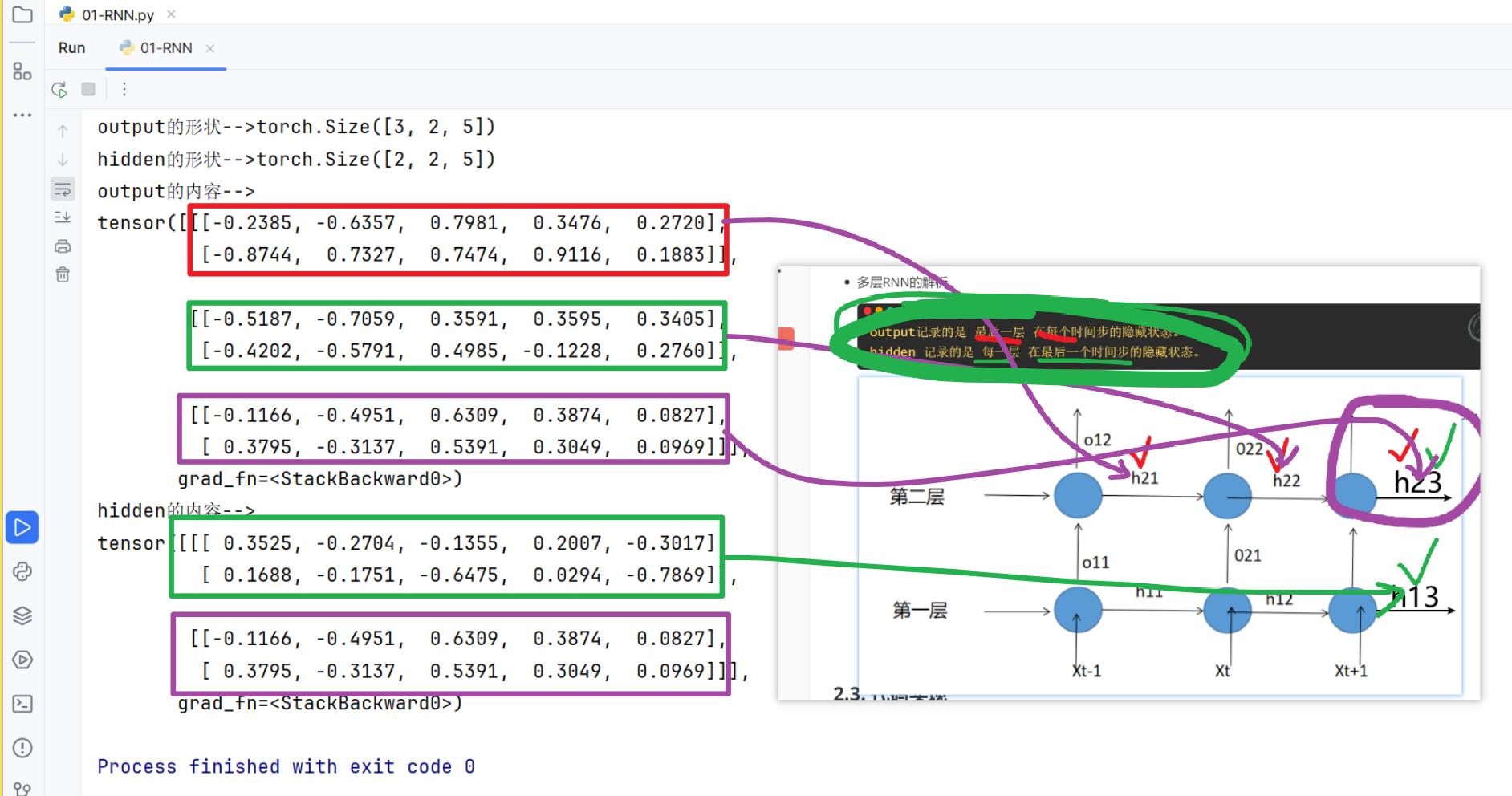print(f'输出层的最后一个值 output last 和 隐藏层的最后一个值 相同h0 last')