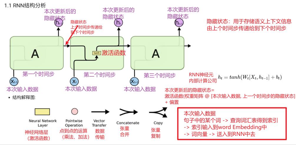 RNN的循环机制使模型隐层上一时间产生的结果,能够作为当下时间步输入的一部分(当下时间步的输入除了正常的输入外还包括上一步的隐藏层输出)对当下时间步的输出产出影响。