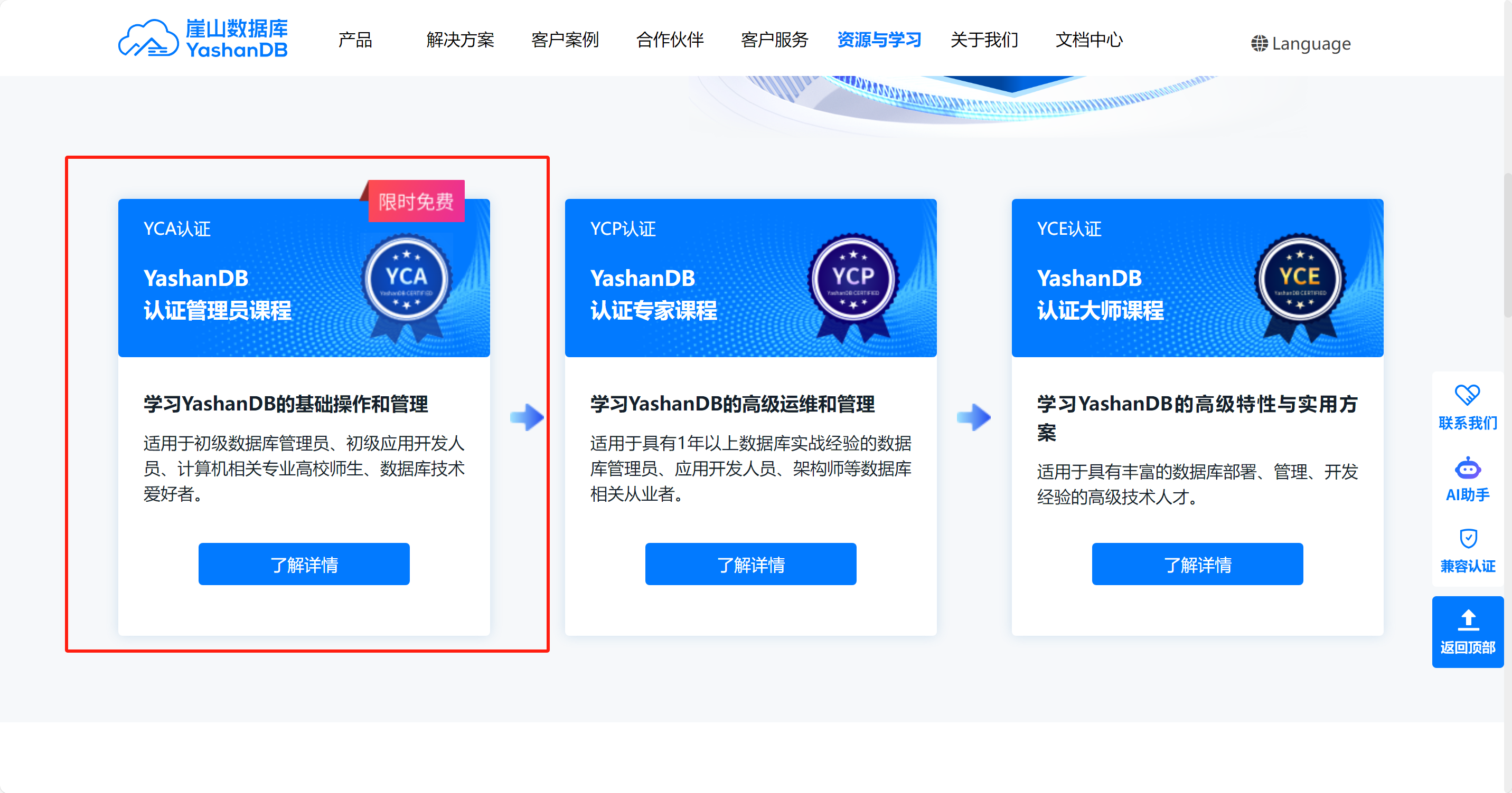 https://yashandb.com/YCA_courses