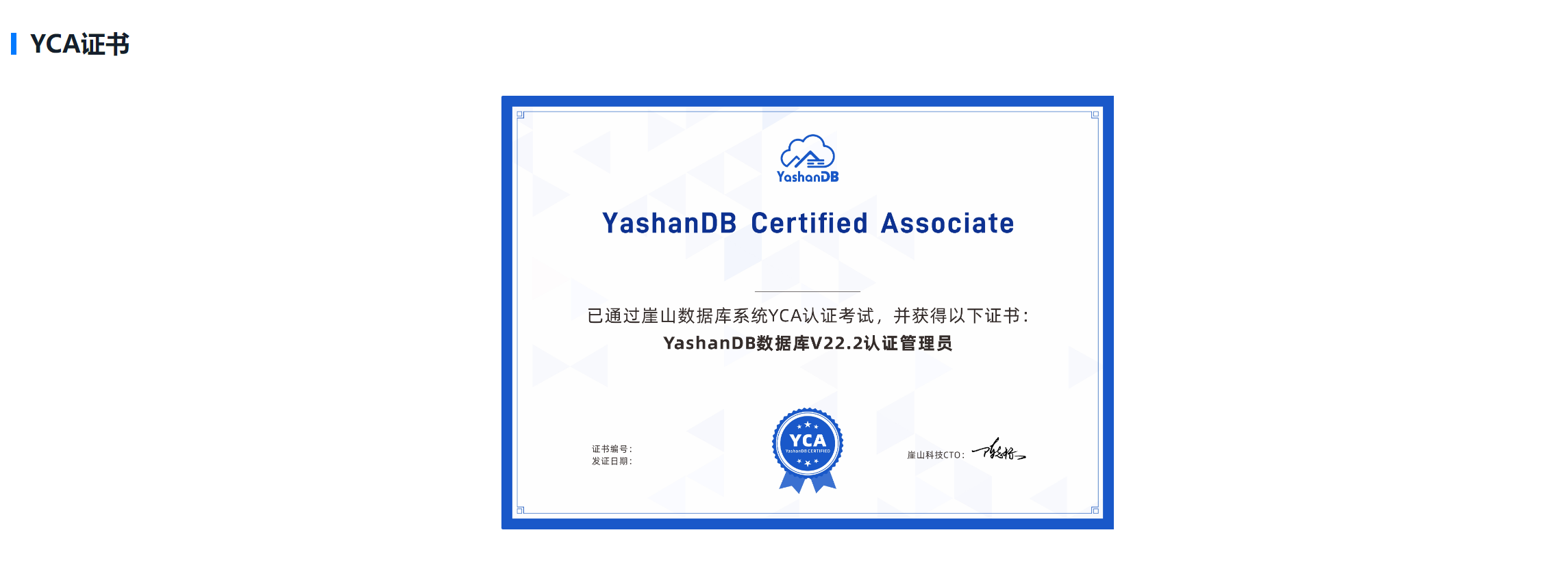 而且最重要的是YCA证书依据YashanDB产品版本发放,没有有效期设置。 这个不用像其他数据库一样去续证,考试到手后就是永久证书。这个是真的很难得。