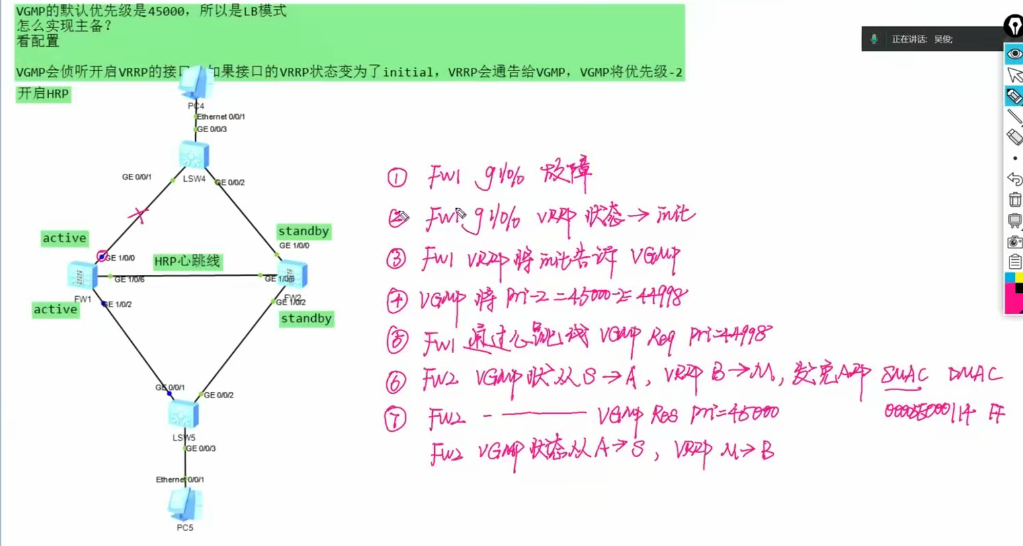 但在华为双机热备模式下,VRRP 的选举结果被 VGMP 覆盖: