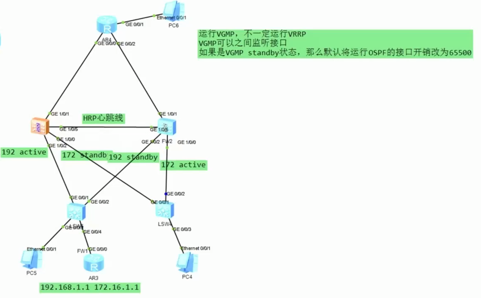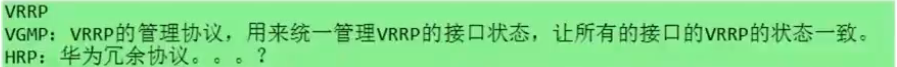 VGMP(VRRP Group Management Protocol)是华为私有的,用来管理整台防火墙的主备角色。