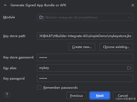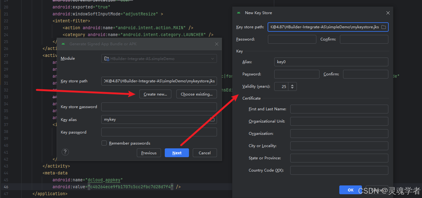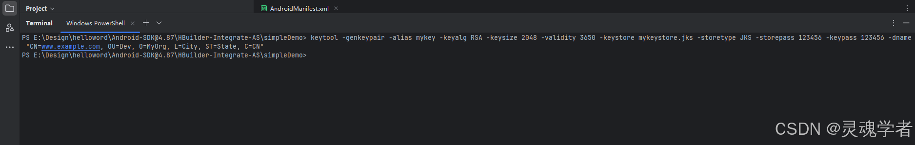 在测试的时候我们用到的是测试版也就是默认的jks签名证书,如果我们要想打包正式版我们就需要用到自己的JKS密钥库来打包,那么首先我们就需要先创建属于开发者的JKS密钥库。
