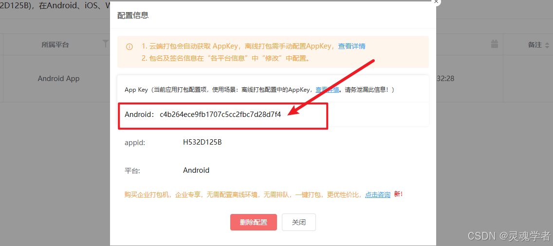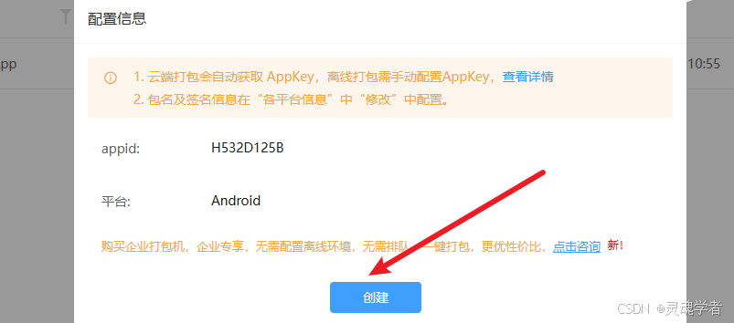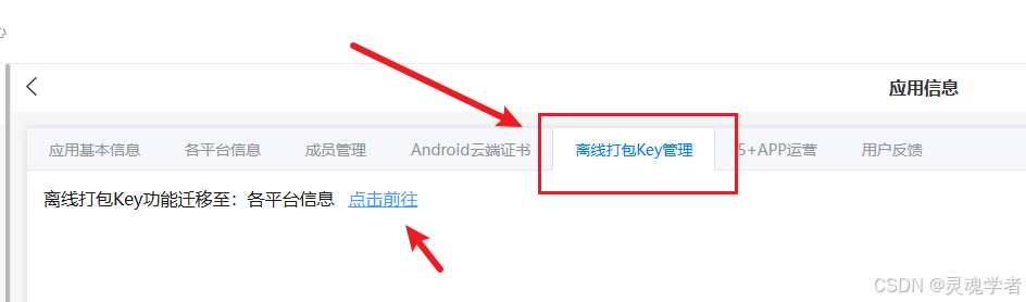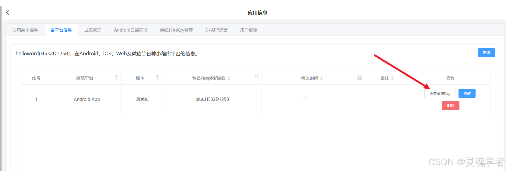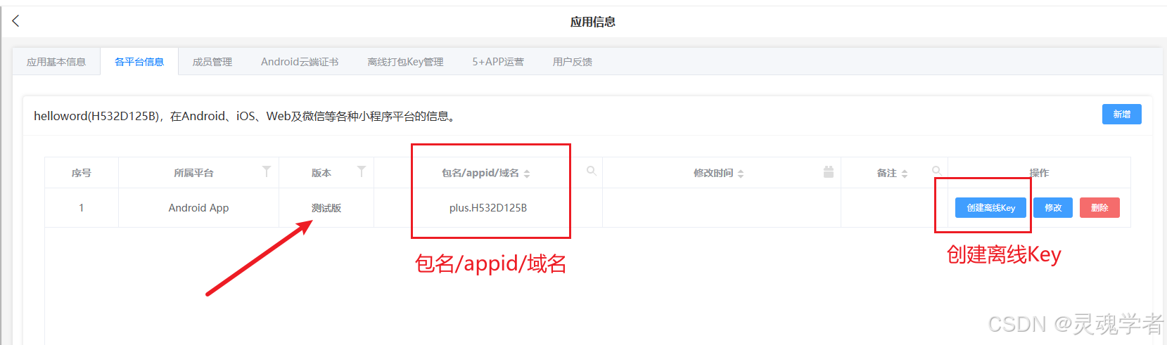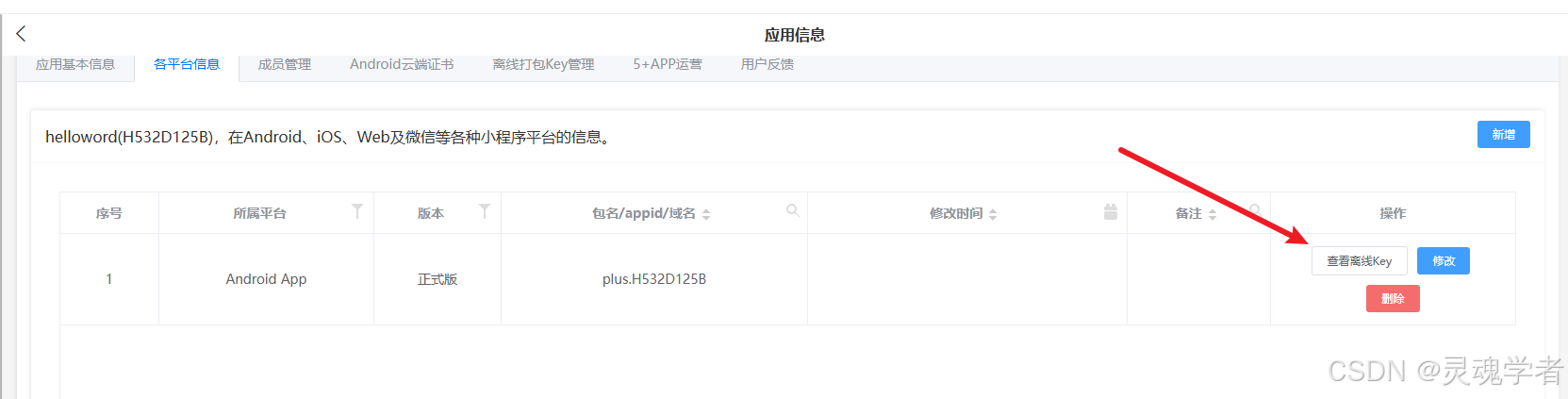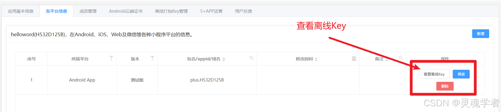 点击会跳到各平台信息,在这里我们来去【创建离线Key】