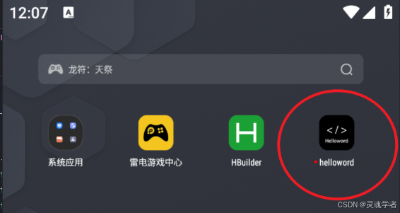 在雷电模拟器中我们切到主界面可以看到这个多出了图标,打开后就刚刚看到运行的样子: