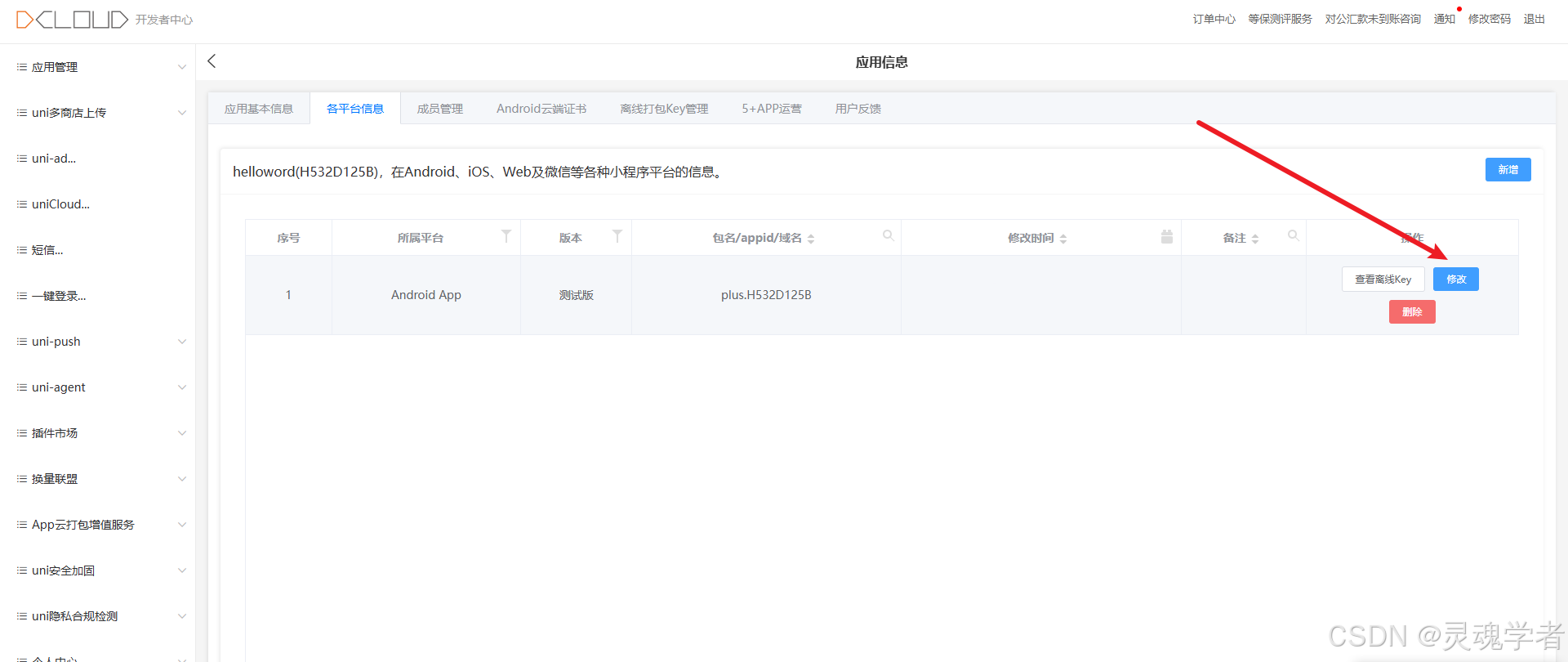完成之后,根据前面测试版的情况,运行是肯定失败的,因为还需要来更新 DCloud 开发者中心的配置信息。