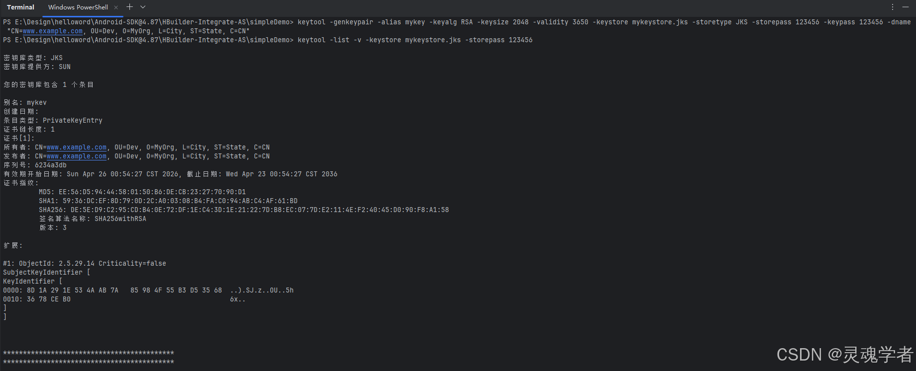 创建 JKS 密钥库最常用、最标准的方法是使用 JDK 自带的 keytool 命令行工具。