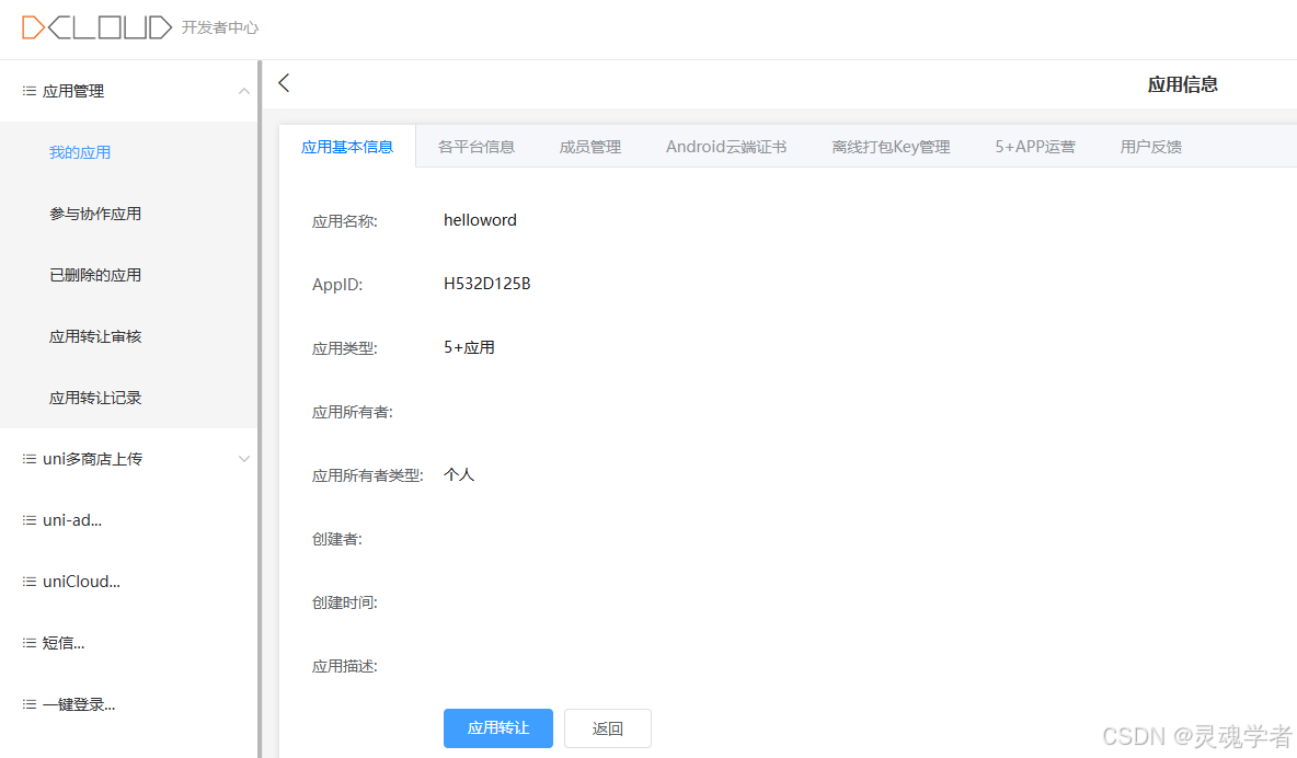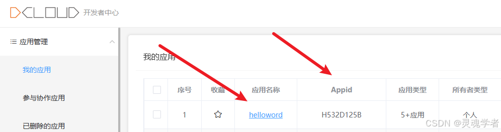 登录进去后,可以看到我们在HbuilderX创建的这个 【helloword】项目,当然在 HbuilderX 中需要登录账户才可以,在开发者中心可以看到如下: