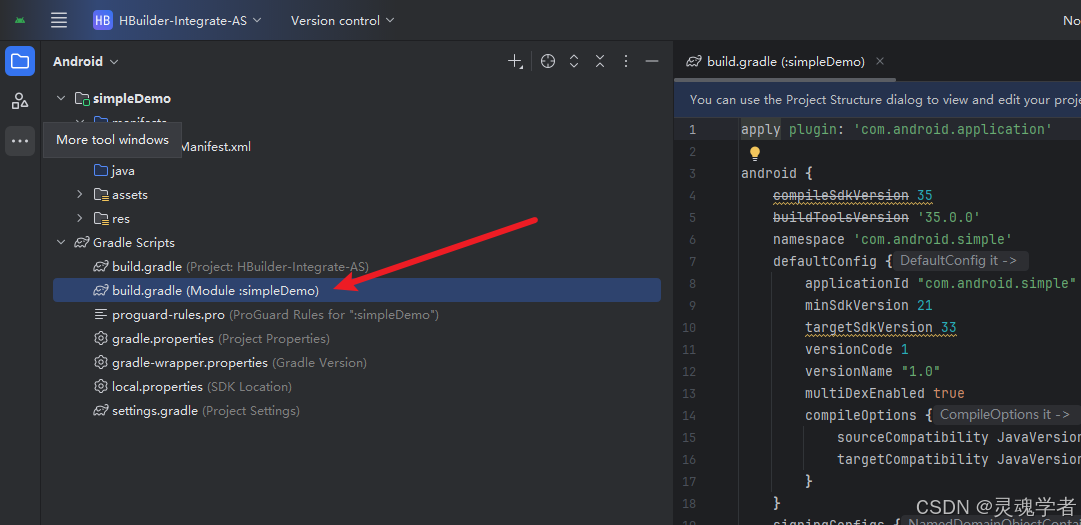 找到并打开文件 【build.gradle】文件,也就路径 simpleDemo下的build 文件,切勿弄错成工程根目录下的 build 文件;