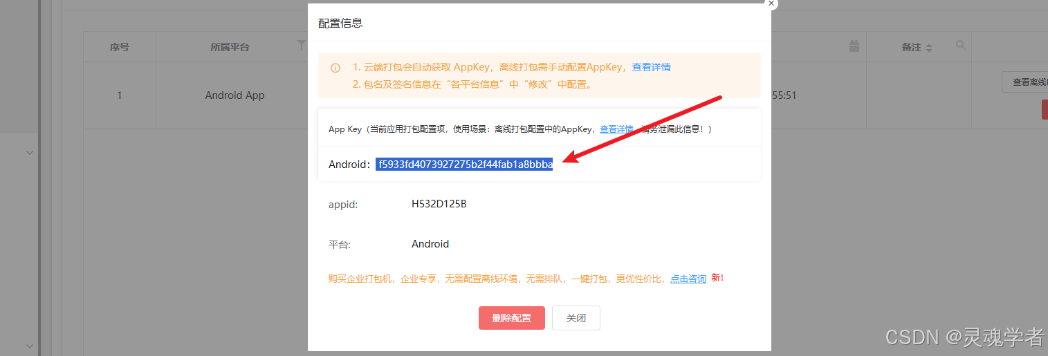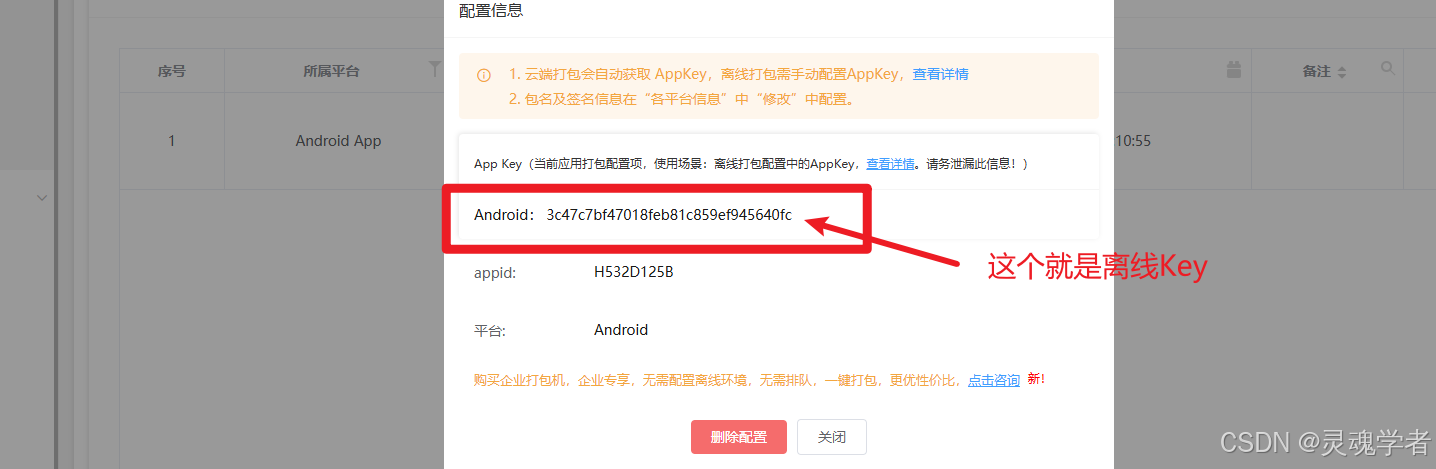 点击【查看离线Key】,可以看到这个离线Key,这个就是接下来我们要用到的。