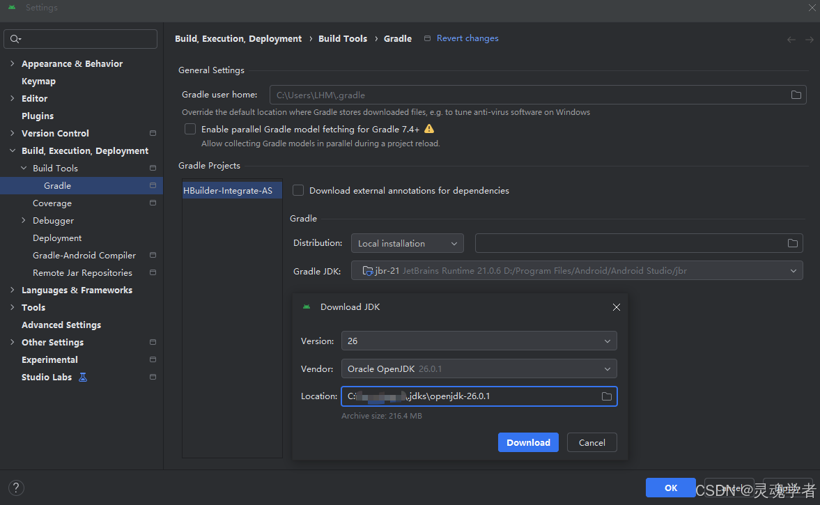 打开这个Gradle JDK中有个 Download JDK 选项可以进行下载JDK: