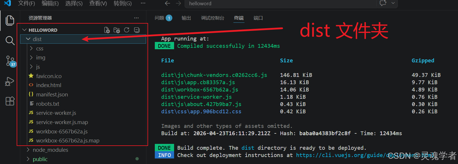 到这里我们就我们的项目进行打包完成,这个dist文件夹就是我们要用到的。