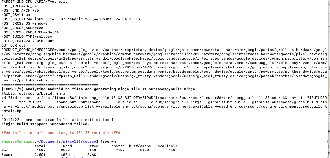 Swap内存报错 导致make -jx的时候 报错