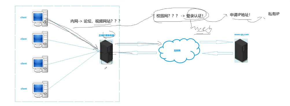 代理服务器是比如我们学校连的校园网其实本质就是你们学校的机房存在一个代理服务器,你是把请求发送给代理服务器的,代理服务器帮助你去访问外网的。