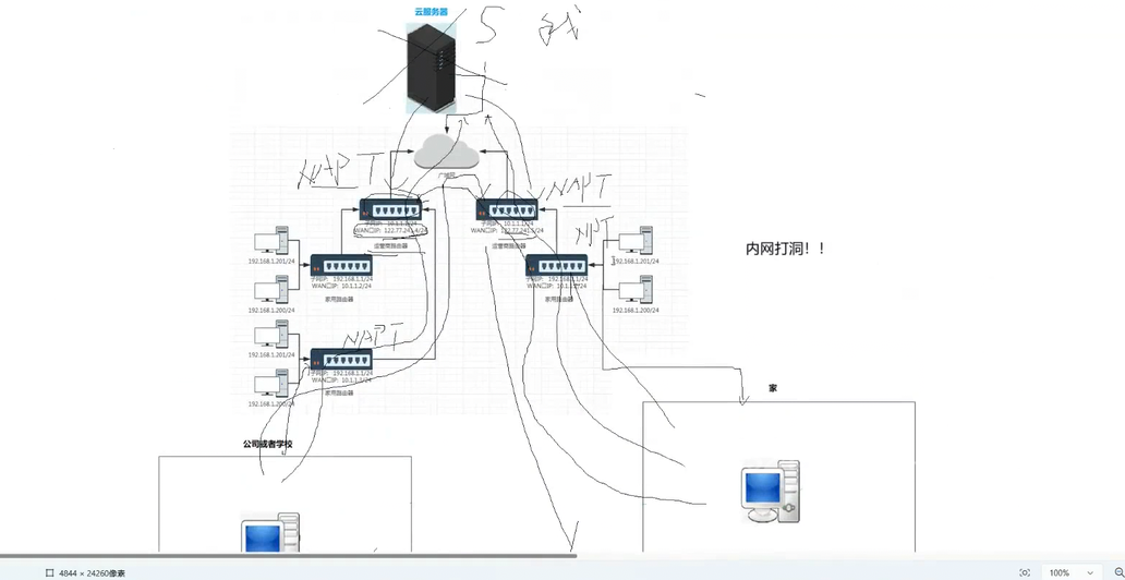我们来结合着这个图来讲解一下,我们上面讲完了NAT,NAPT此时我们就知道我们是如何通过QQ这个聊天软件来进行聊天功能的了,就是通过建立NAPT表然后进行NAT路由转换吗,此时有没有一种可能性就是我们的就是,你给我发信息的时候,你不是把你的全局IP+端口号都发给我了吗,此时我可不可以把你的这个记录下来,下次我访问你就直接拿着你的这个全局IP+端口号通过我们路由转换,进入到局域网直接去找到你的NAPT表然后我们进行通信啊,此时就跳过了服务器,这个内网打洞和内网穿透很像,只不过一个是跳过服务器一个是依赖服务器。