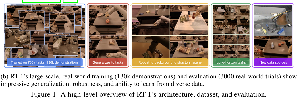 - RT-1能否学会执行大量指令,并在零样本情况下推广到新任务、新物体和新环境?