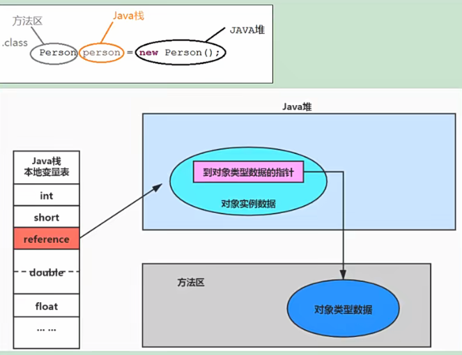- 定义为一个数字数组,主要用于存储方法参数和定义在方法体内的局部变量,这些数据类型包括各类基本数据类型(8种)、对象引用(reference),以及returnAddress类型。