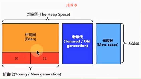 其中:这个方法区,在jdk8后把方法区由之前永久代(堆)中移除了,移到元数据了