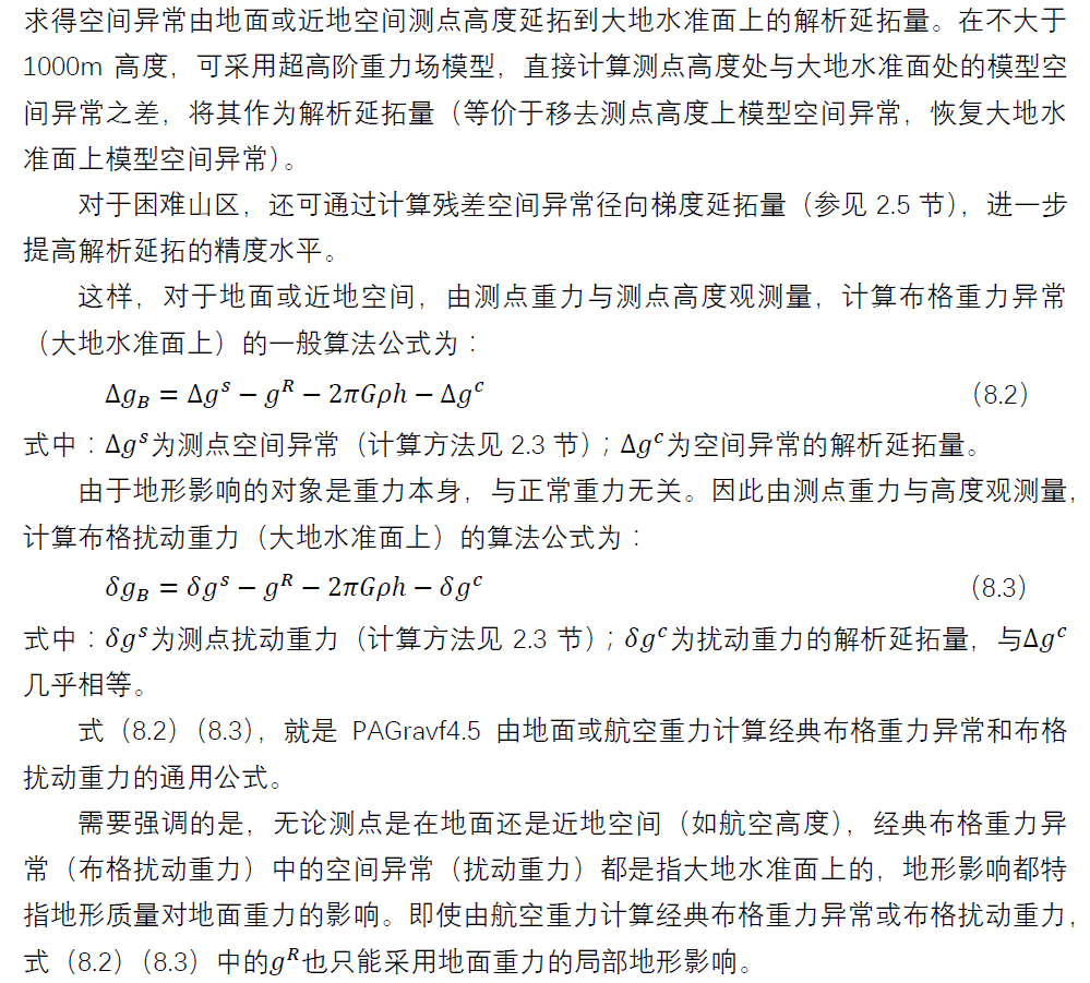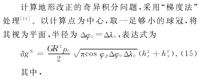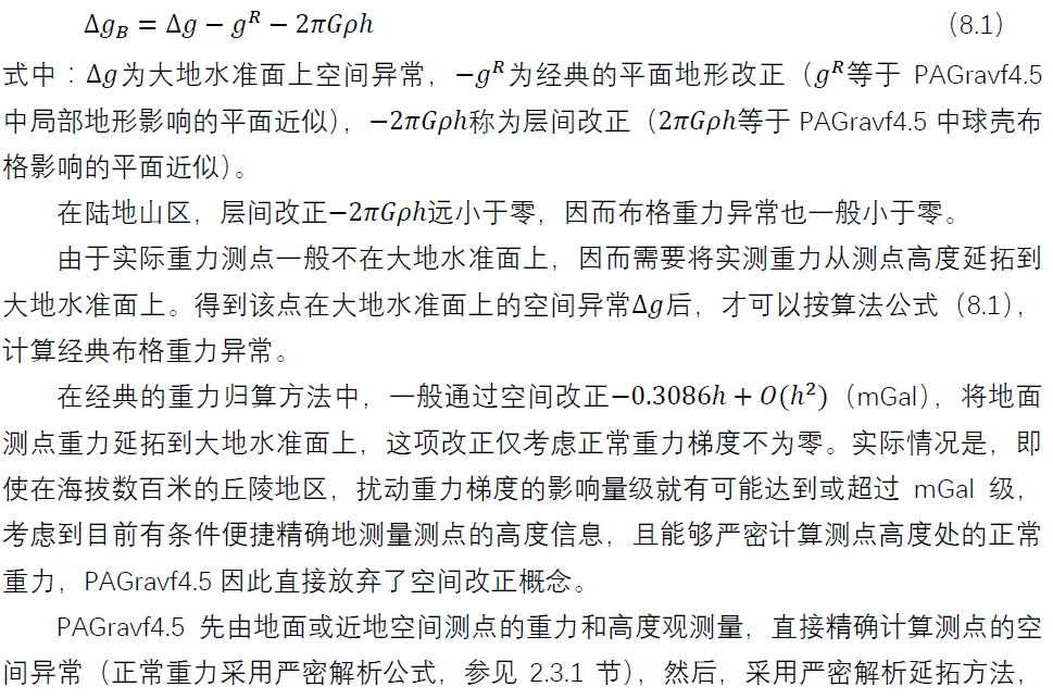 Stokes理论中布格重力异常在大地水准面上定义,等于大地水准面上的空间异常,减去大地水准面外所有地形质量对地面点重力产生的影响。大地水准面上的重力布格异常经典算法为:
