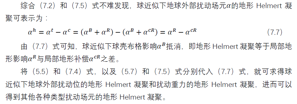 剩余地形影响等于高分辨率完全布格影响与低通完全布格影响之差,类似地,地形Helmert凝聚等于完全布格影响与地形质量补偿之差。