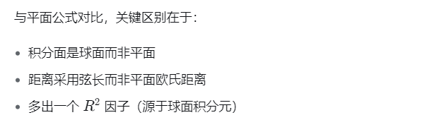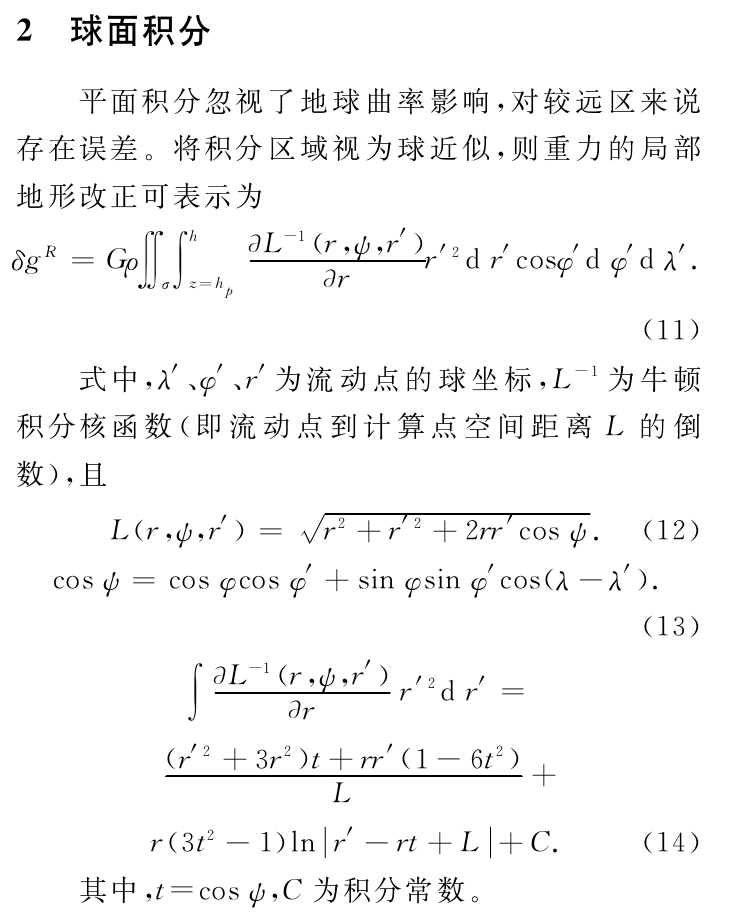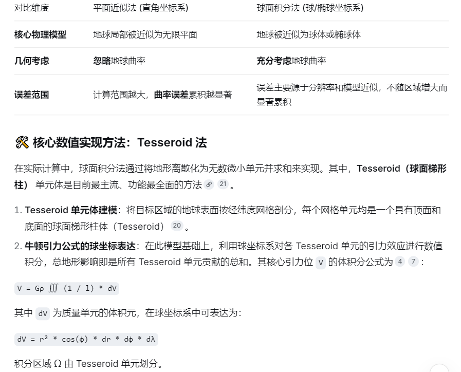 球面积分法的核心,是将地球的几何形态近似为一个球体或椭球体,而非一个无限延伸的平面。通过引入地球曲率,从根本上考虑了地形质量分布随地球表面的弯曲,这在下表中与平面近似法有明显区别: