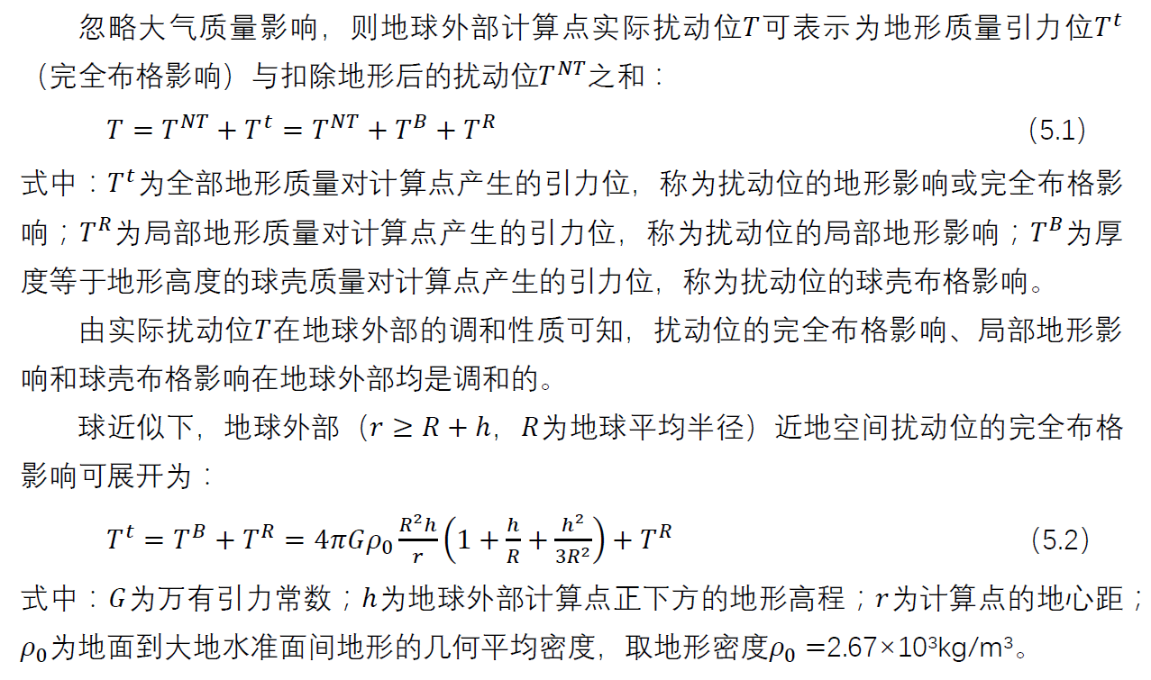 陆域地形引力场也称为陆域地形完全布格影响,定义为大地水准面以上地形质量对地球重力场(各种场元)的影响。