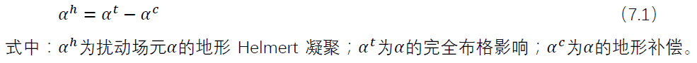 地形的Helmert凝聚,涉及一种称为地形质量补偿的概念,简称地形补偿。大地水准面外部任意类型扰动场元的地形补偿定义为:为抵消移去地形质量即扣除地形影响后导致地球引力场发生变化,从而对该类型扰动场元进行的质量补偿量。