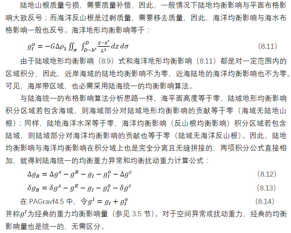 陆域地形导致大地水准面以外存在质量,需要去掉,产生陆地布格影响。而在海洋地区,海平面(大地水准面)下方的海水密度小于地形密度,海水质量层亏损需要补偿,产生海水布格影响。