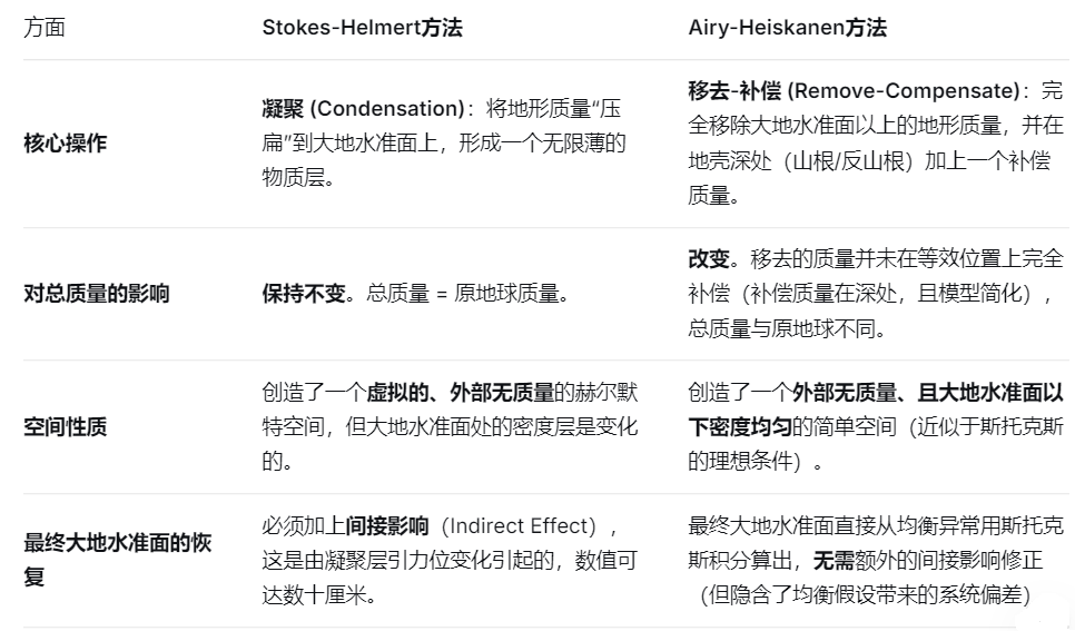 为什么要剥离它? 因为斯托克斯理论需要的是完全消除所有与地形相关的异常,以便获得一个仅由内部密度不均匀决定的、纯调和的引力场。如果不剥离均衡补偿的重力效应,计算出的似大地水准面或大地水准面会包含由地壳厚度变化造成的长波信号,而不是真正的形状。