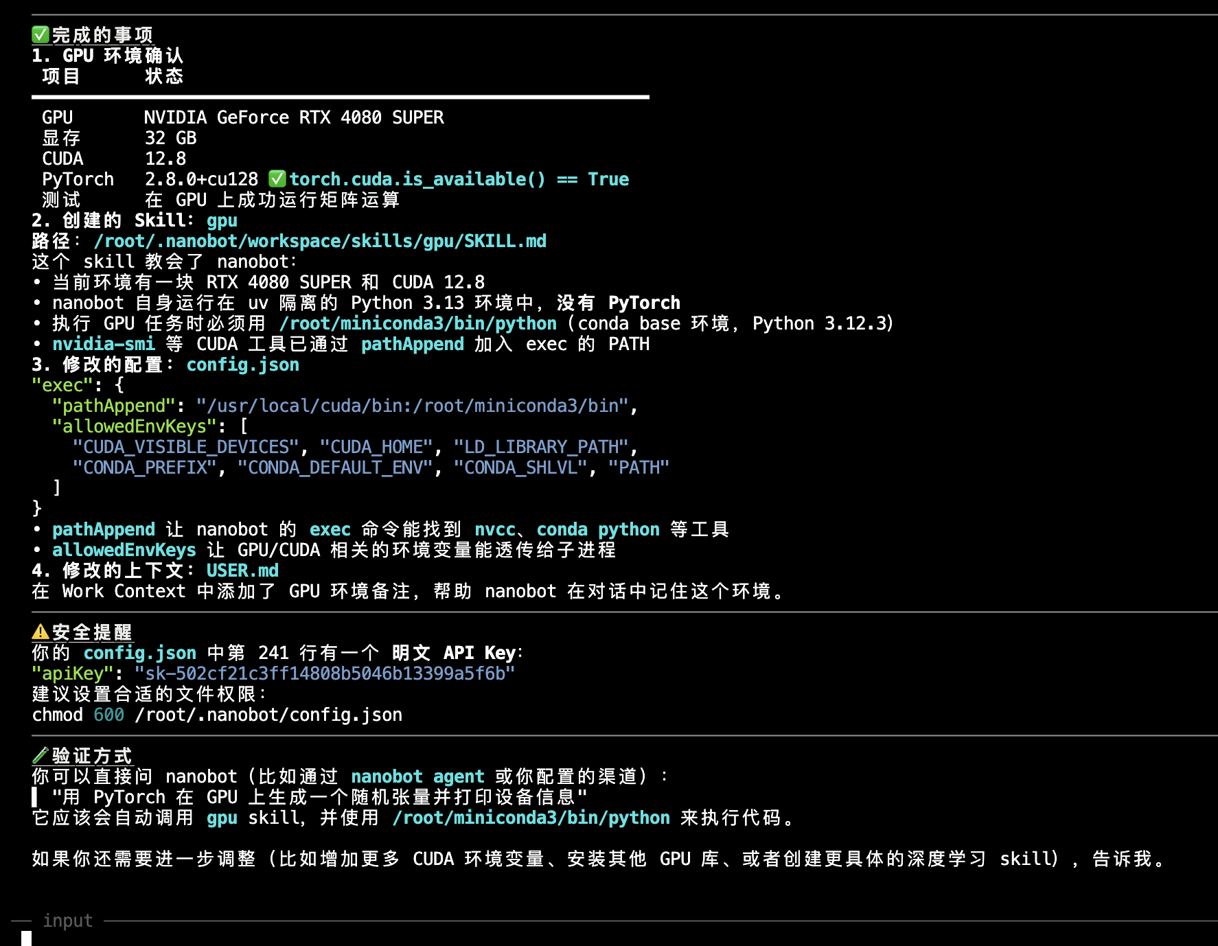 - 更新上下文 → 让 NanoBot 在后续对话中持续记住这个 GPU 环境