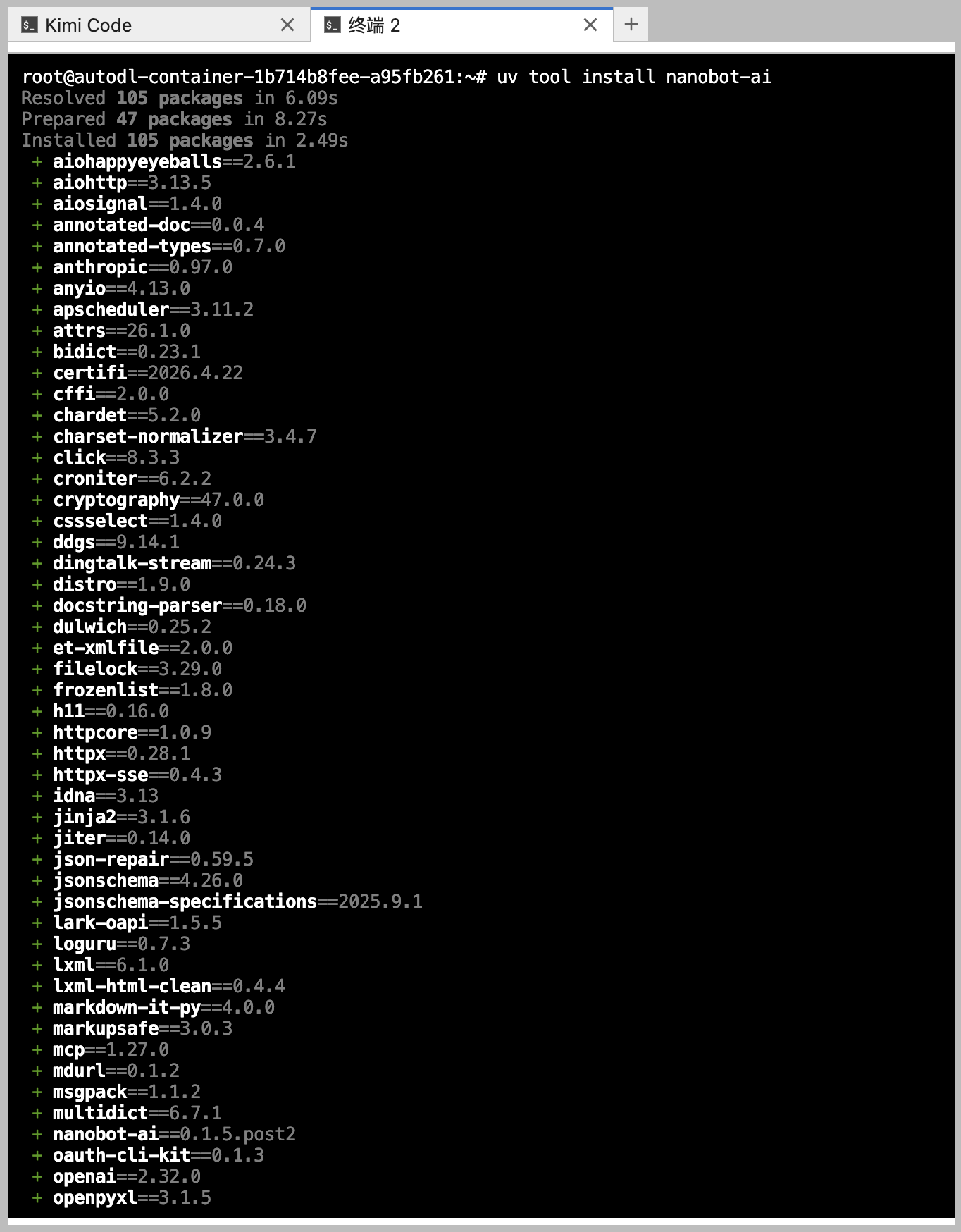 - ✅ 在 AutoDL 上安装 Kimi Code