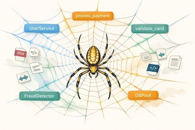 业界的标准答案是 RAG:把文件切块、嵌入、丢进向量库,查询时取 top-K 块。对散文类文档,RAG 工作得很好------语义相似度本身就是一个靠谱的检索信号。但对代码就不一样了:函数和它的调用者之间的关系是结构性的,不是语义性的。"process_payment 调用 validate_card"这种事实不存在于嵌入空间里,它存在于调用图里。